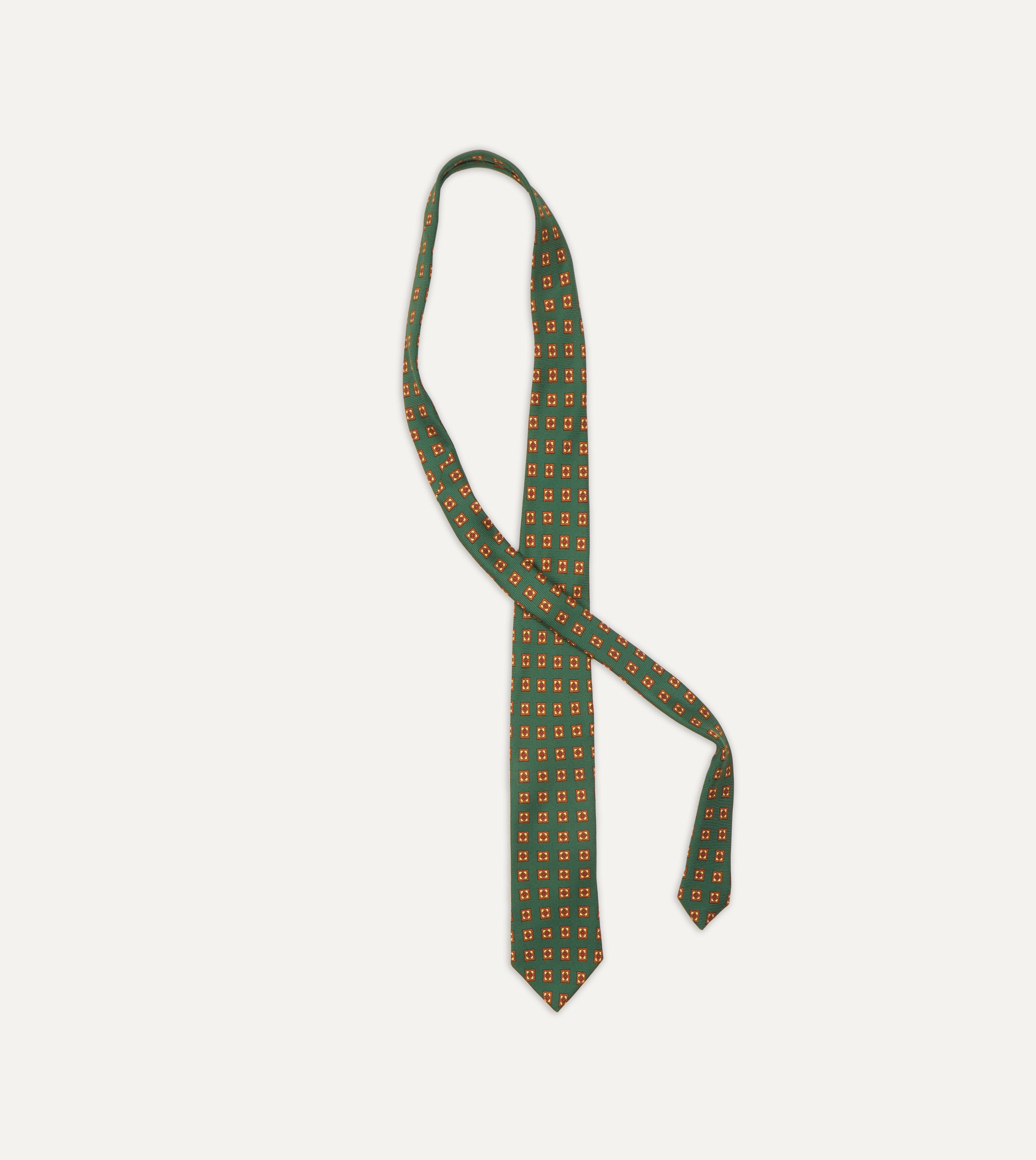 Green and Gold Diamond Medallion Print Madder Twill Silk Tie