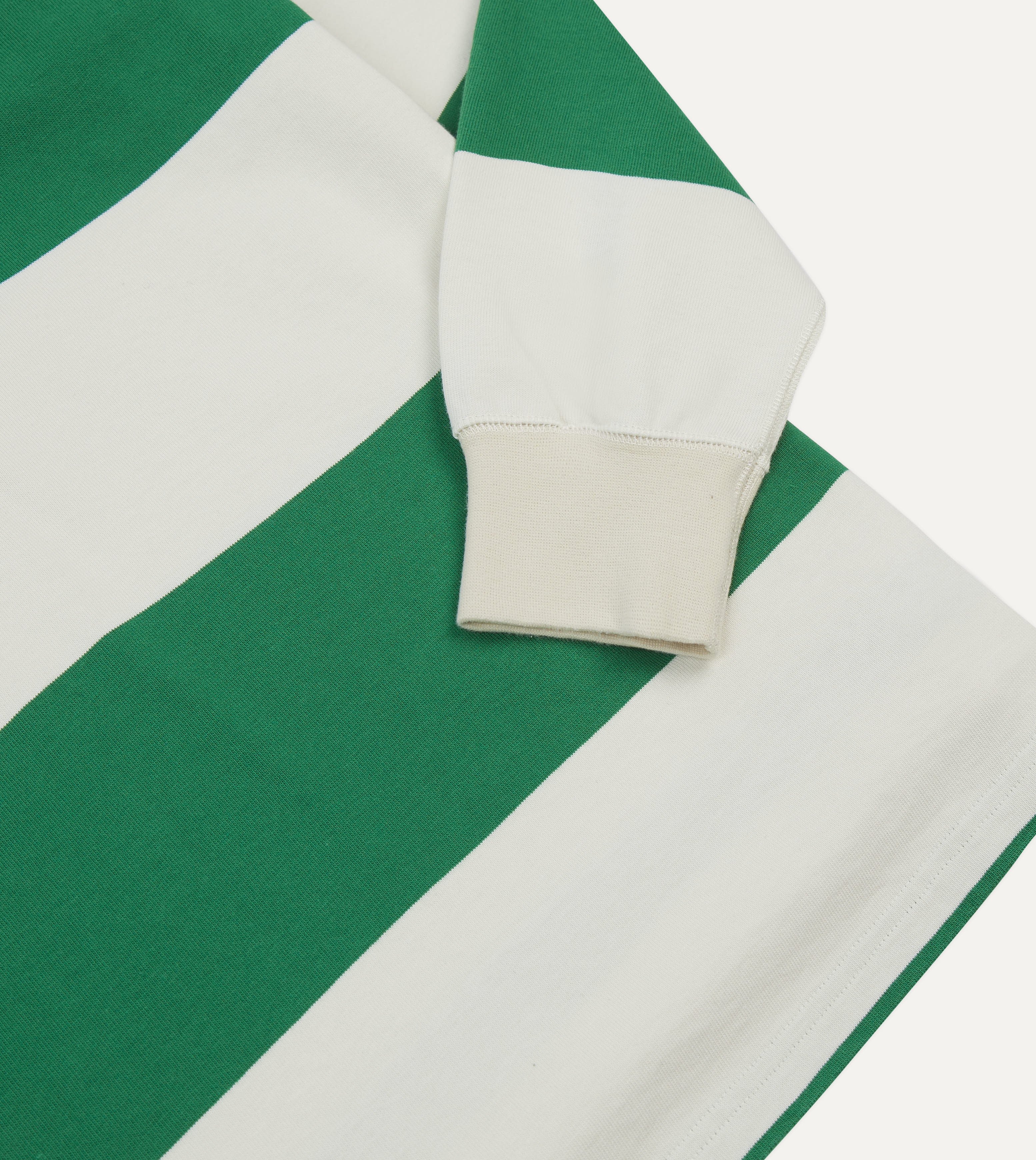 Green and White Stripe Cotton Mandarin Collar Rugby Shirt
