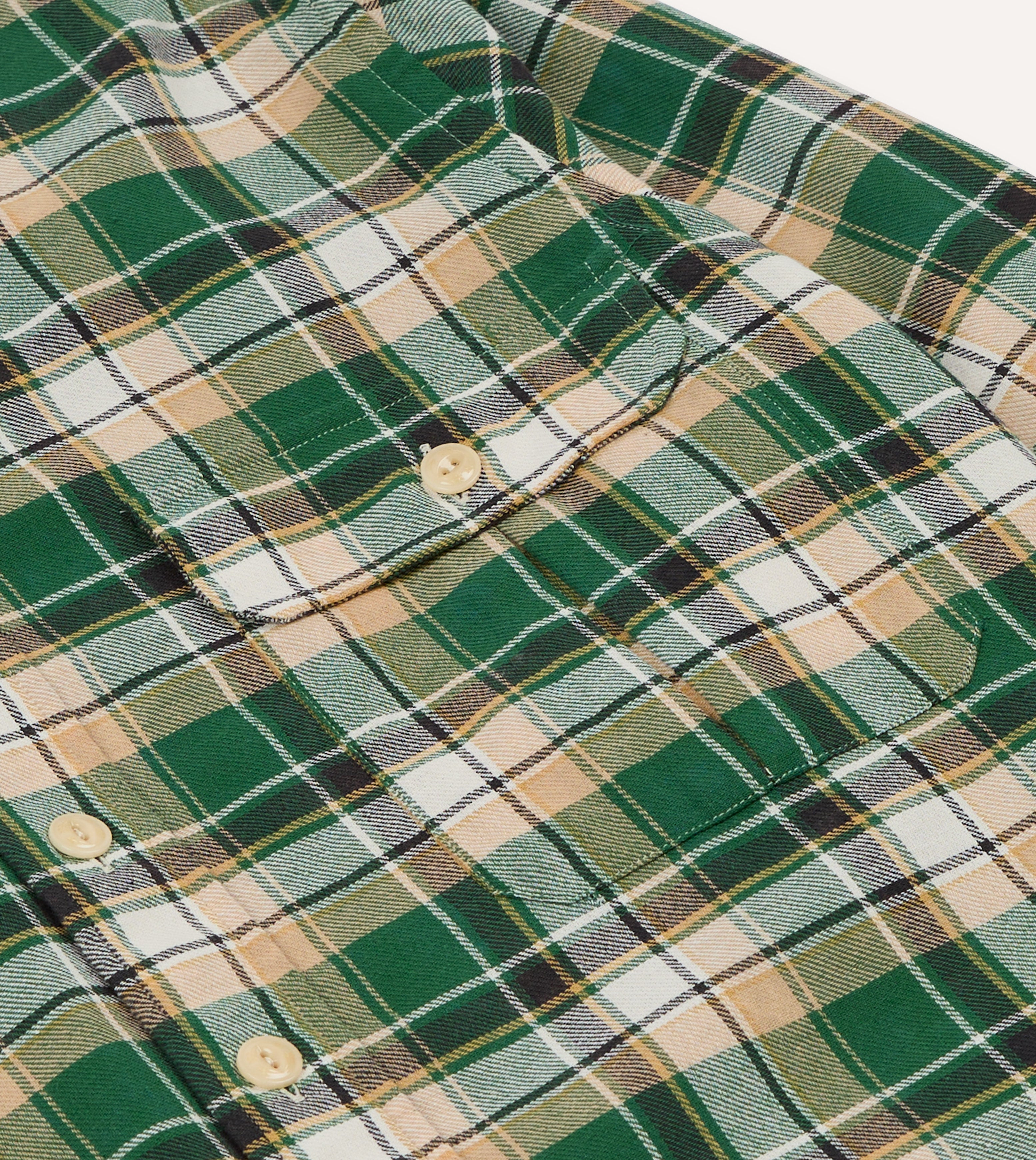Green Check Cotton Two-Pocket Work Shirt