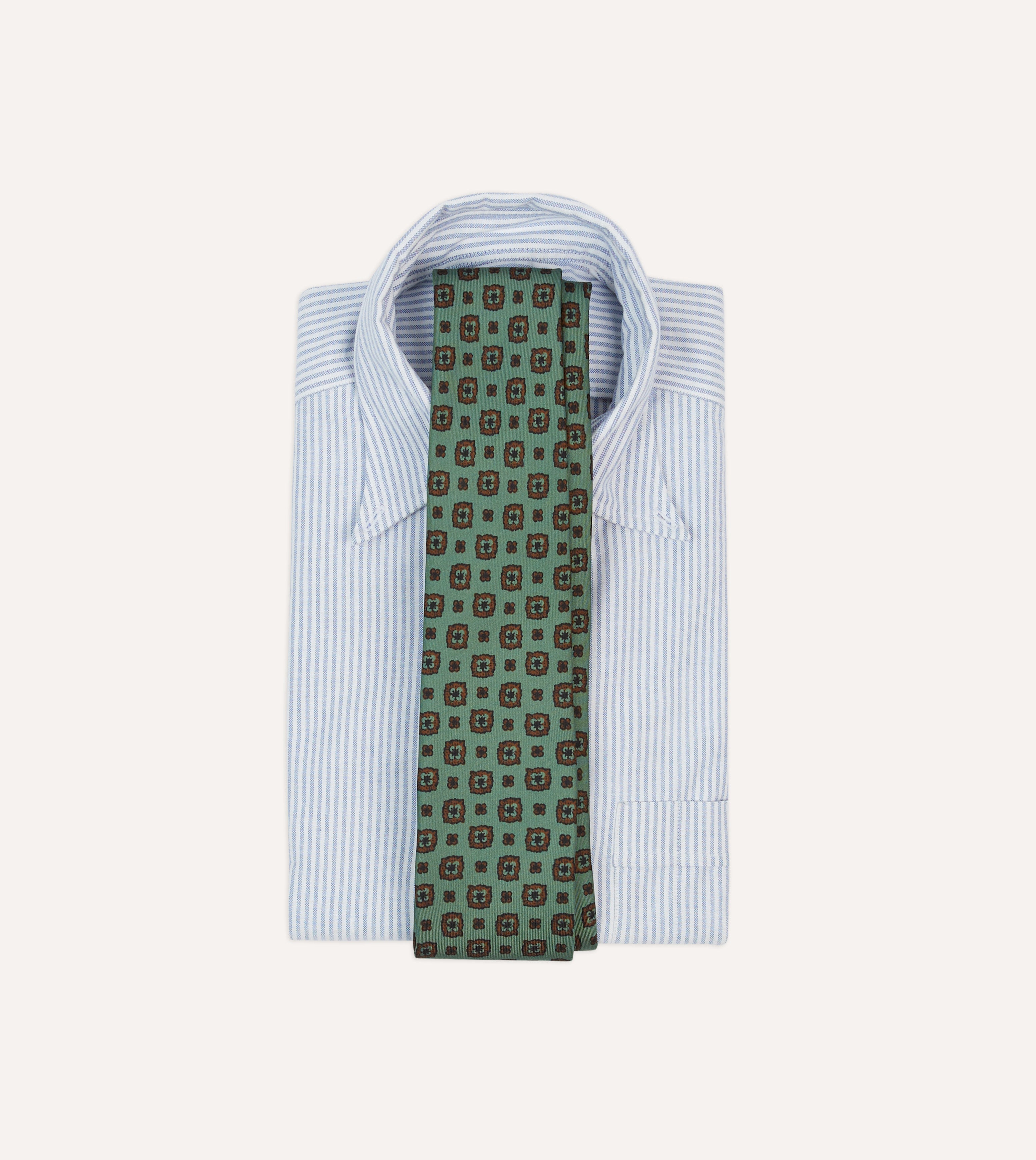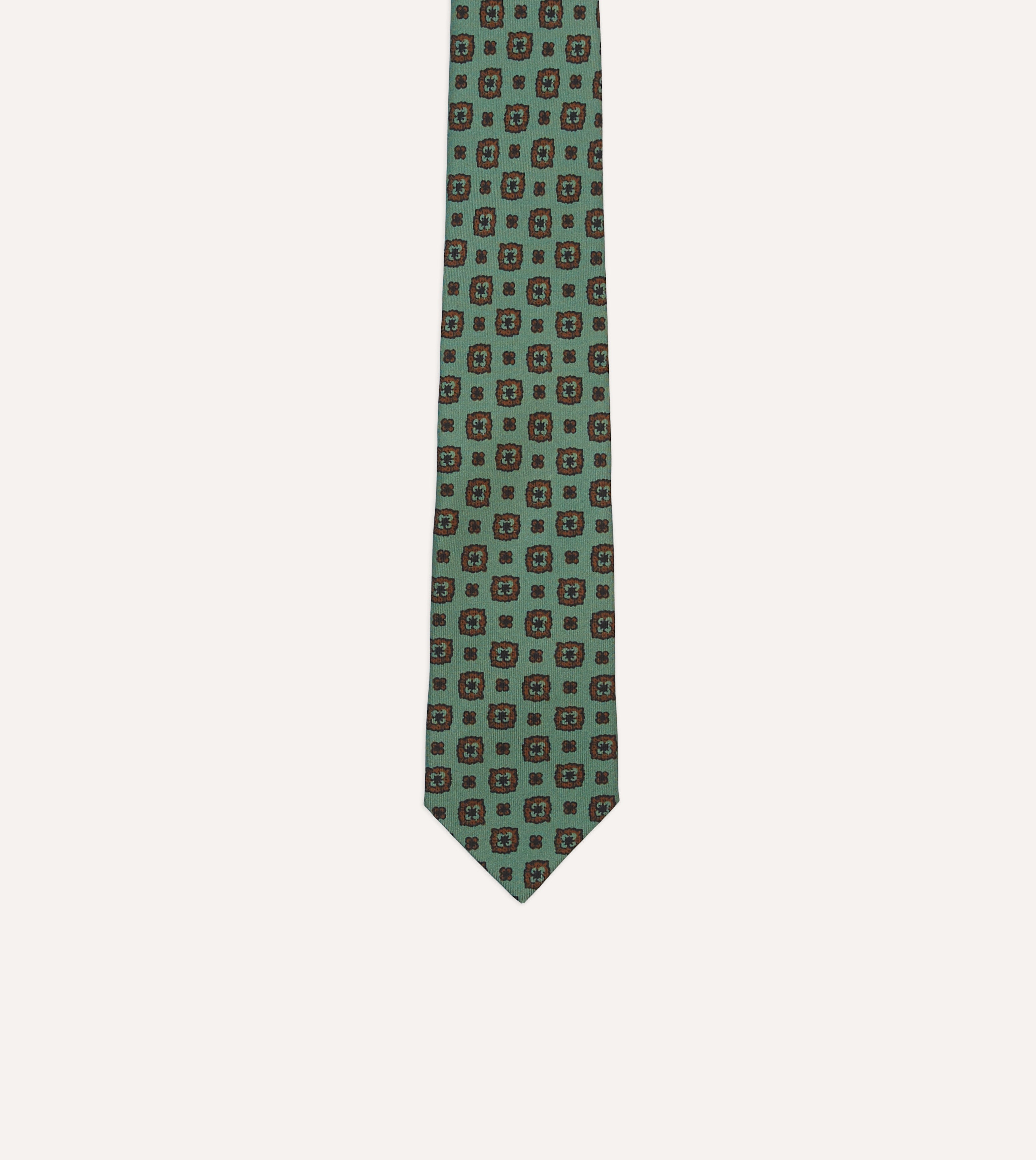 An ornate medallion design simply exudes elegance, particularly when printed on pure silk and hand rolled by our dedicated tiemakers in the heart of east London.