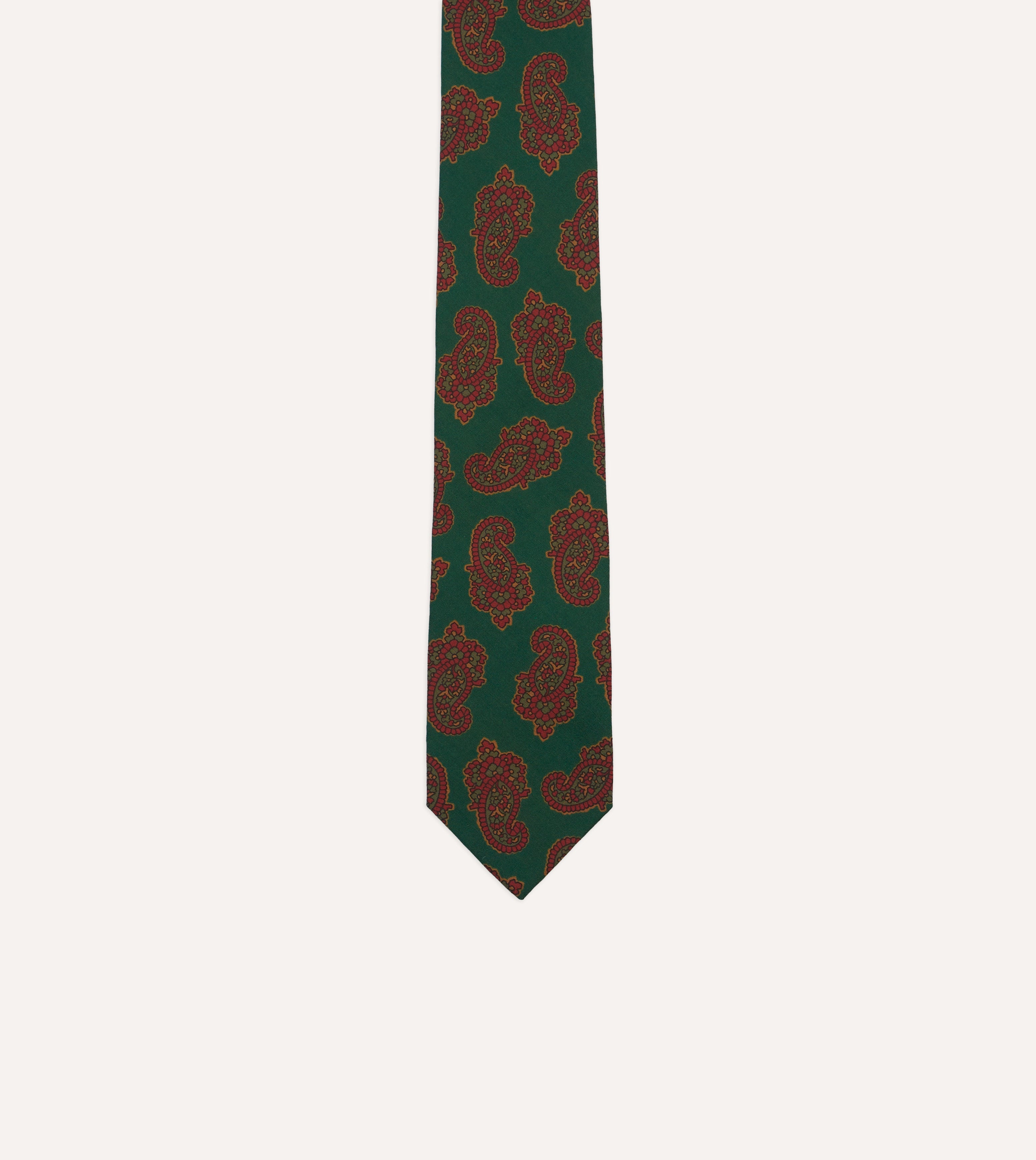 This design, direct from our extensive archive, is printed on a tactile blend of wool and silk, and features a classic paisley design, reminiscent of the elegant late 1960s neckwear favoured by rockstars and royalty alike.