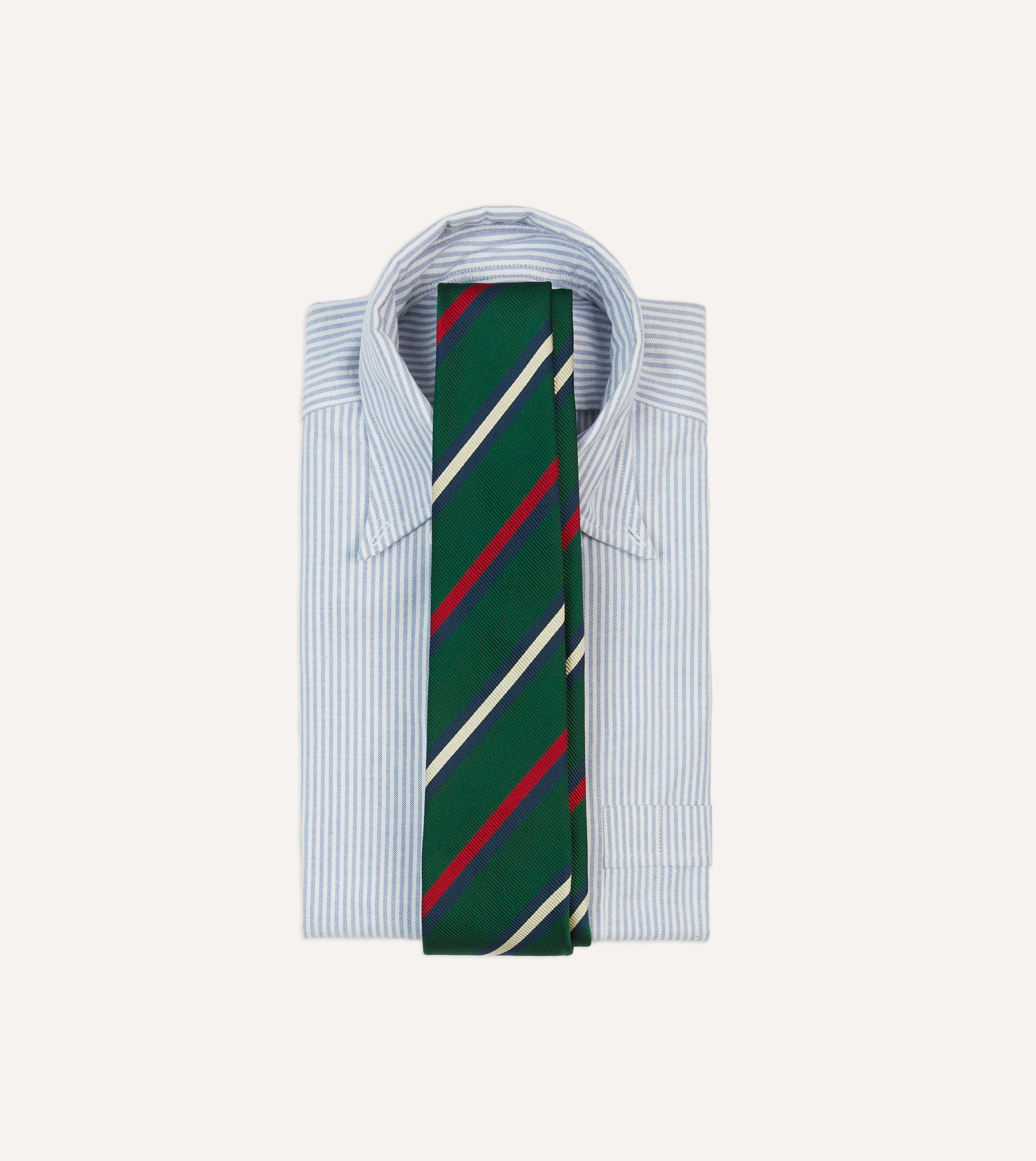 A striped pure silk tie is one of the most enduring pieces of neckwear available, redolent of earlier periods of style, while retaining a distinctly modern feel.