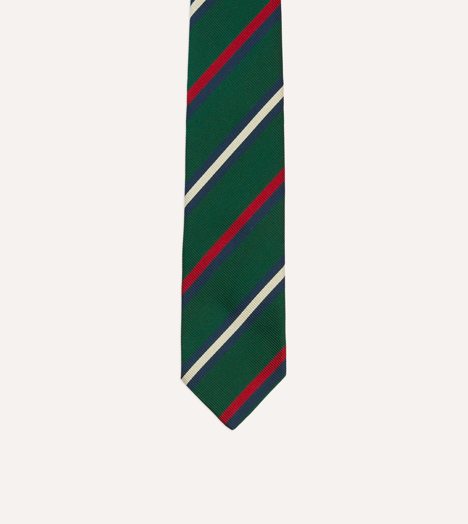 Green, Red and White Stripe Repp Silk Tipped Tie