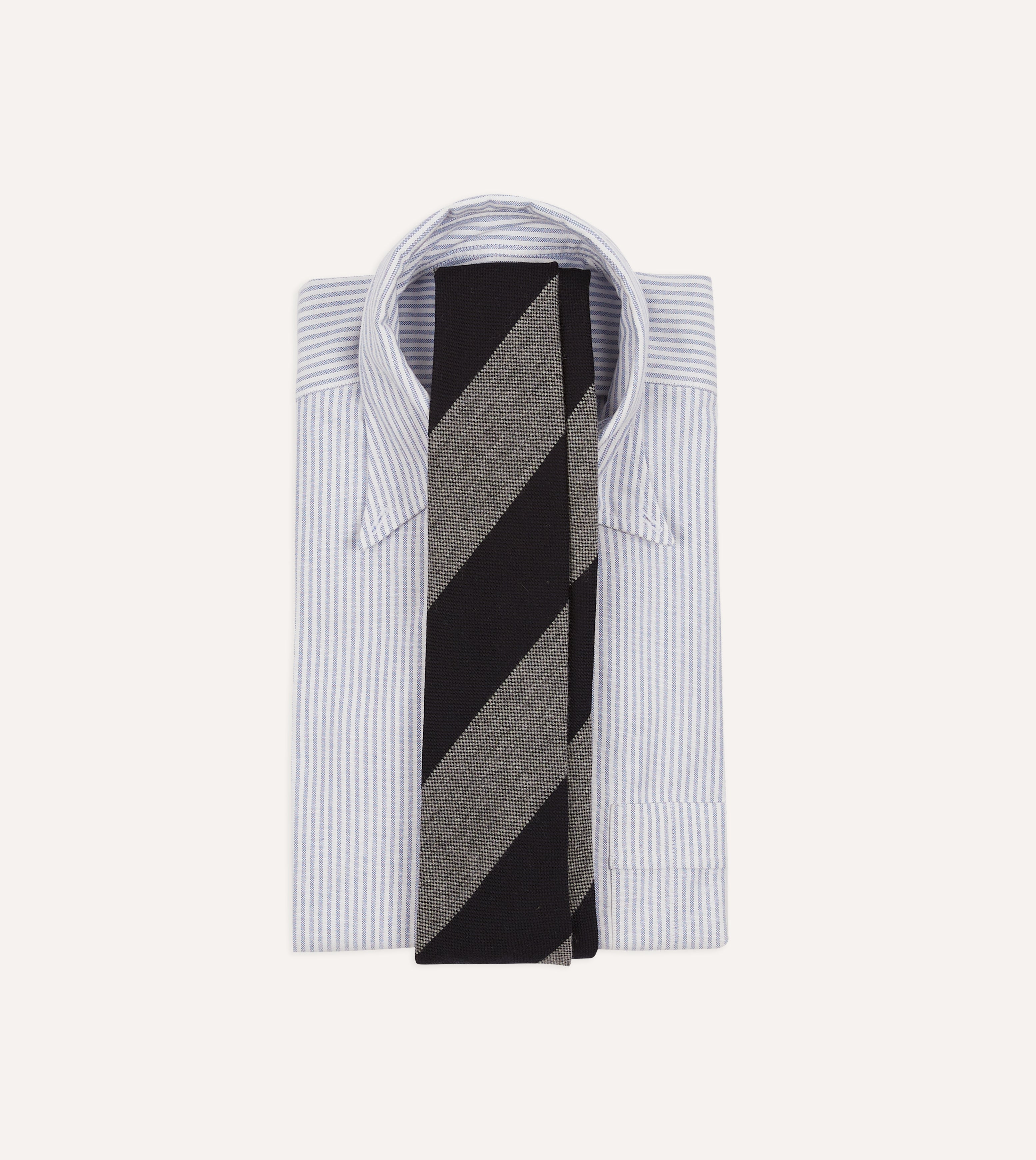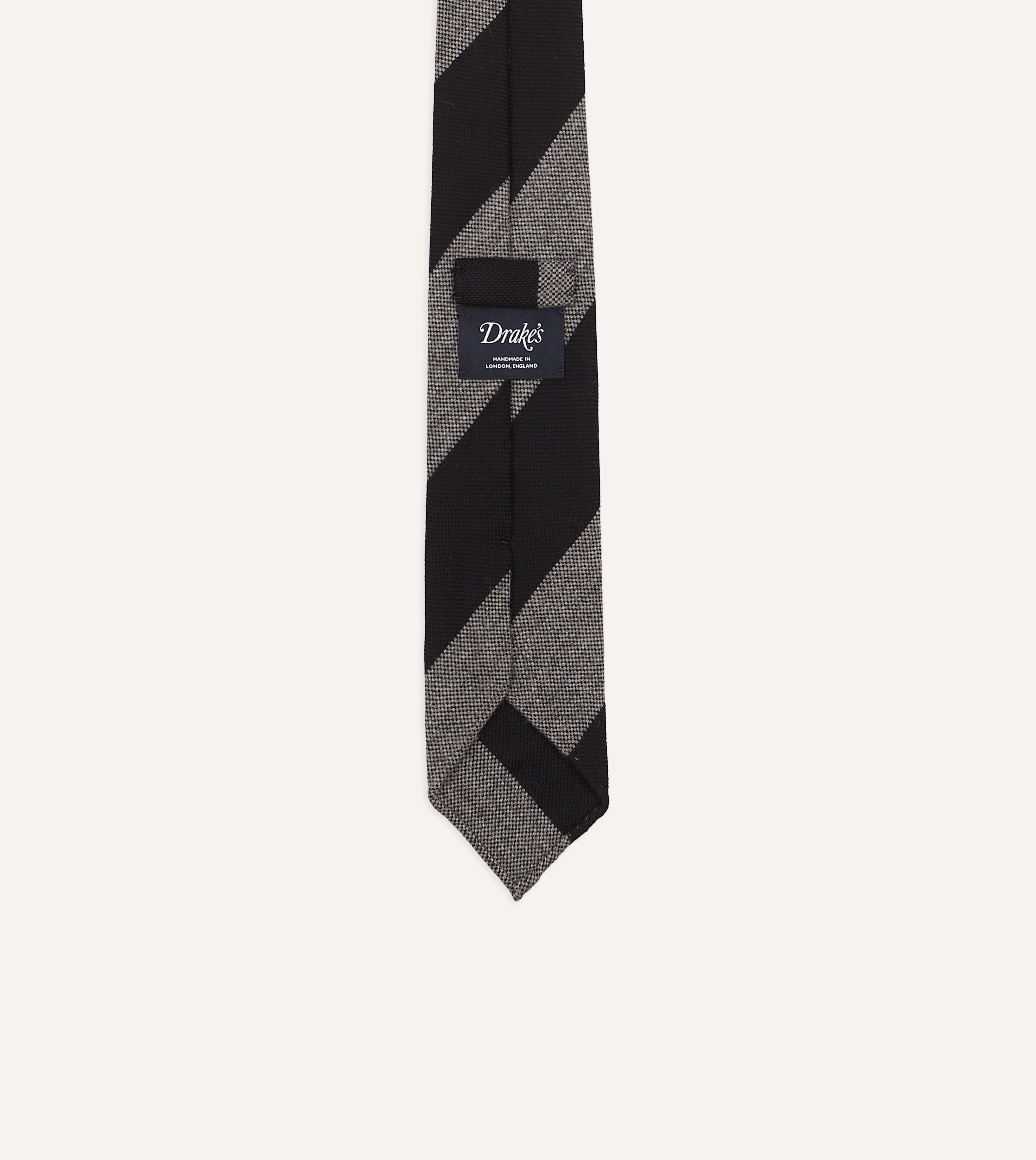 Grey and Black Block Stripe Hand Rolled Wool Tie