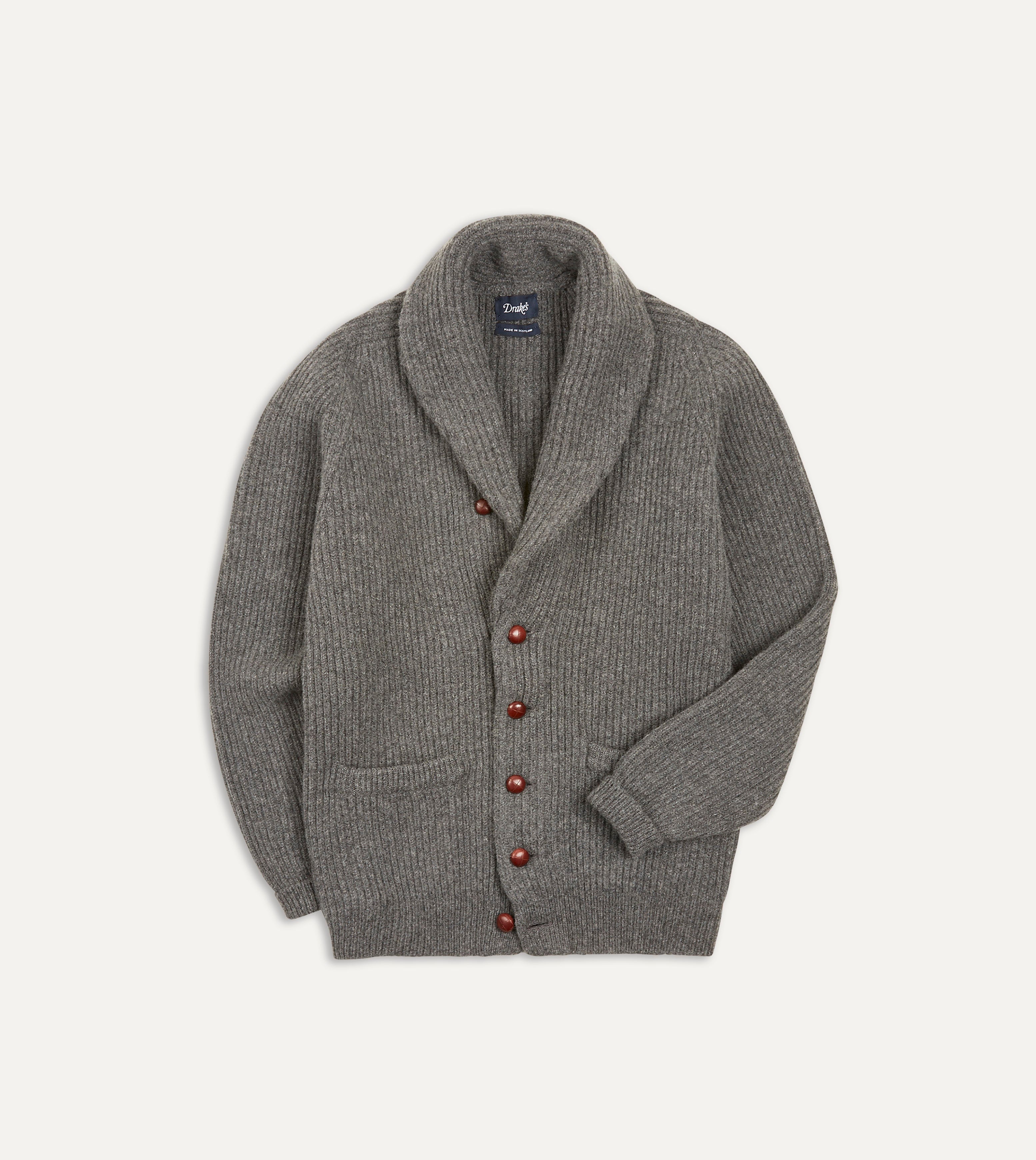 Grey Lambswool Shawl Collar Cardigan