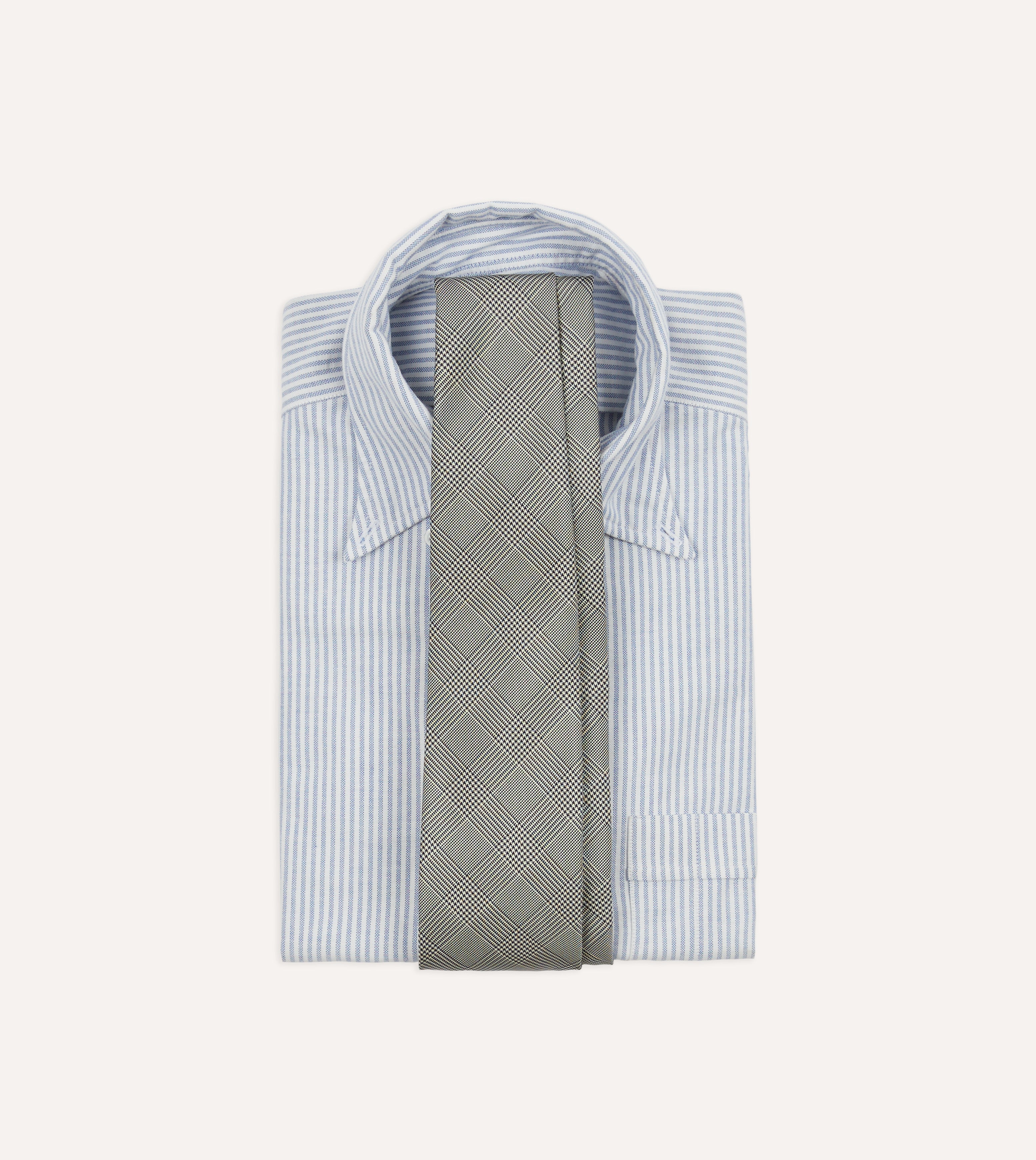 This silk tie is a perfect accompaniment to tweed sports jackets and checked country shirtings, with a rich, slightly casual air.