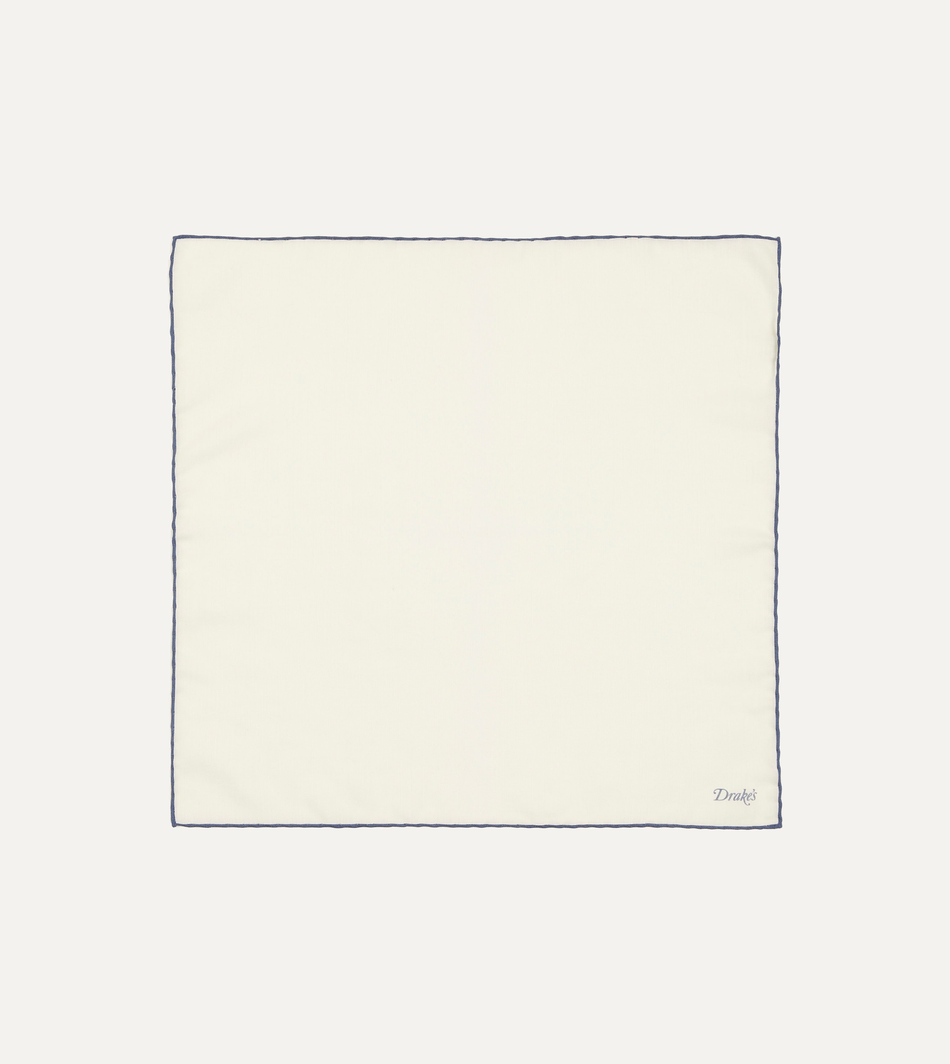 Ivory and Blue Shoestring Border Silk Pocket Square