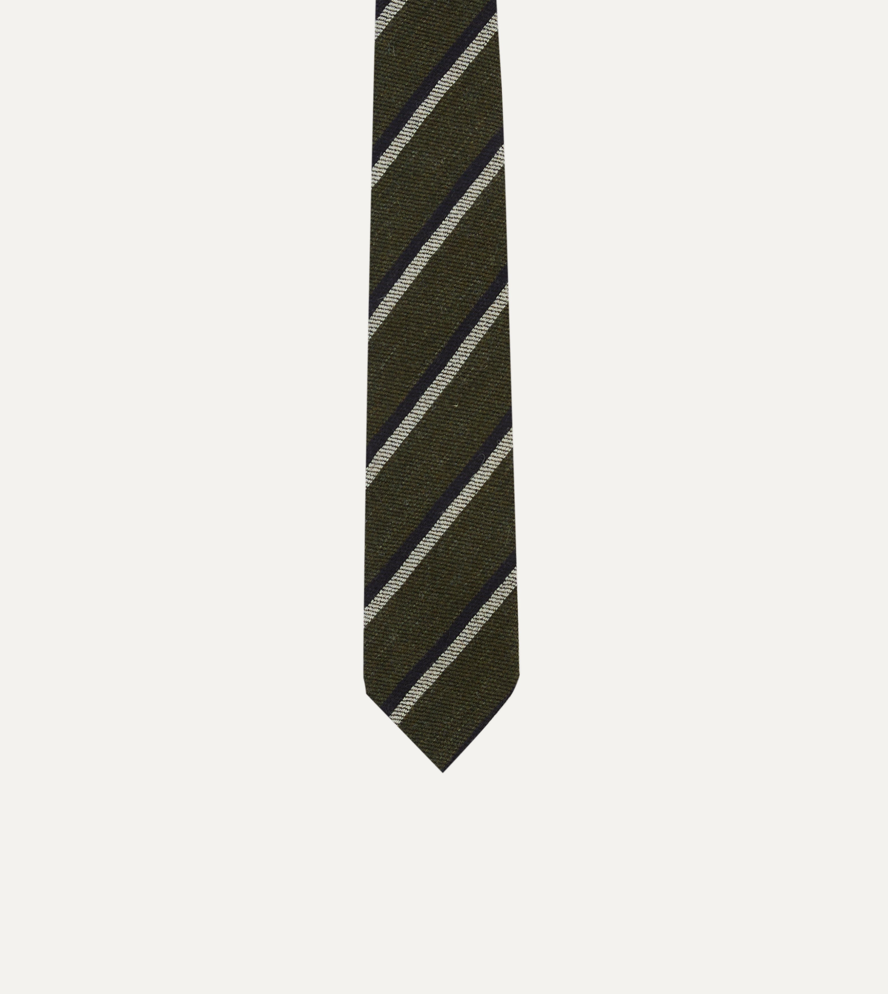 Khaki, White and Navy Double Stripe Tipped Wool Tie