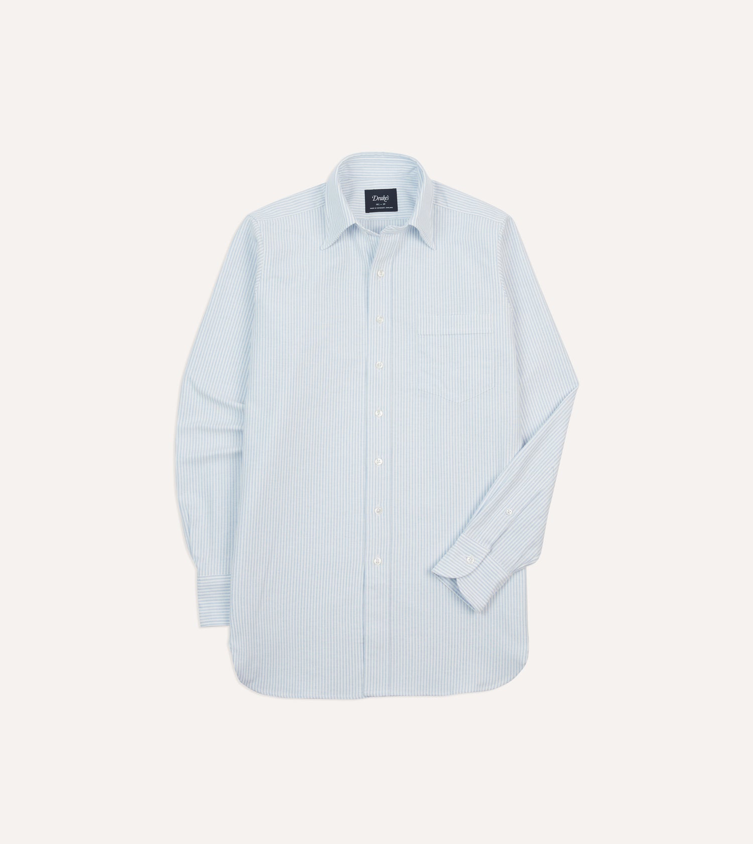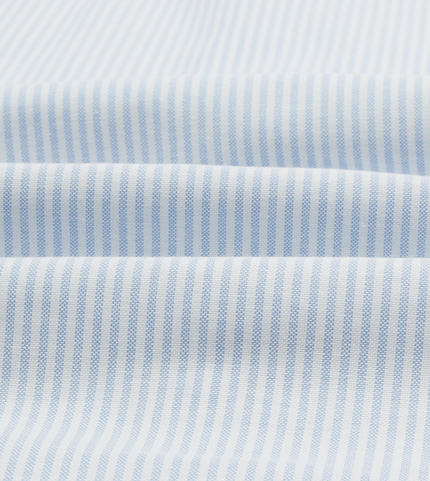 Light Blue and White Ticking Stripe Cotton Oxford Cloth Long Point Collar Shirt
