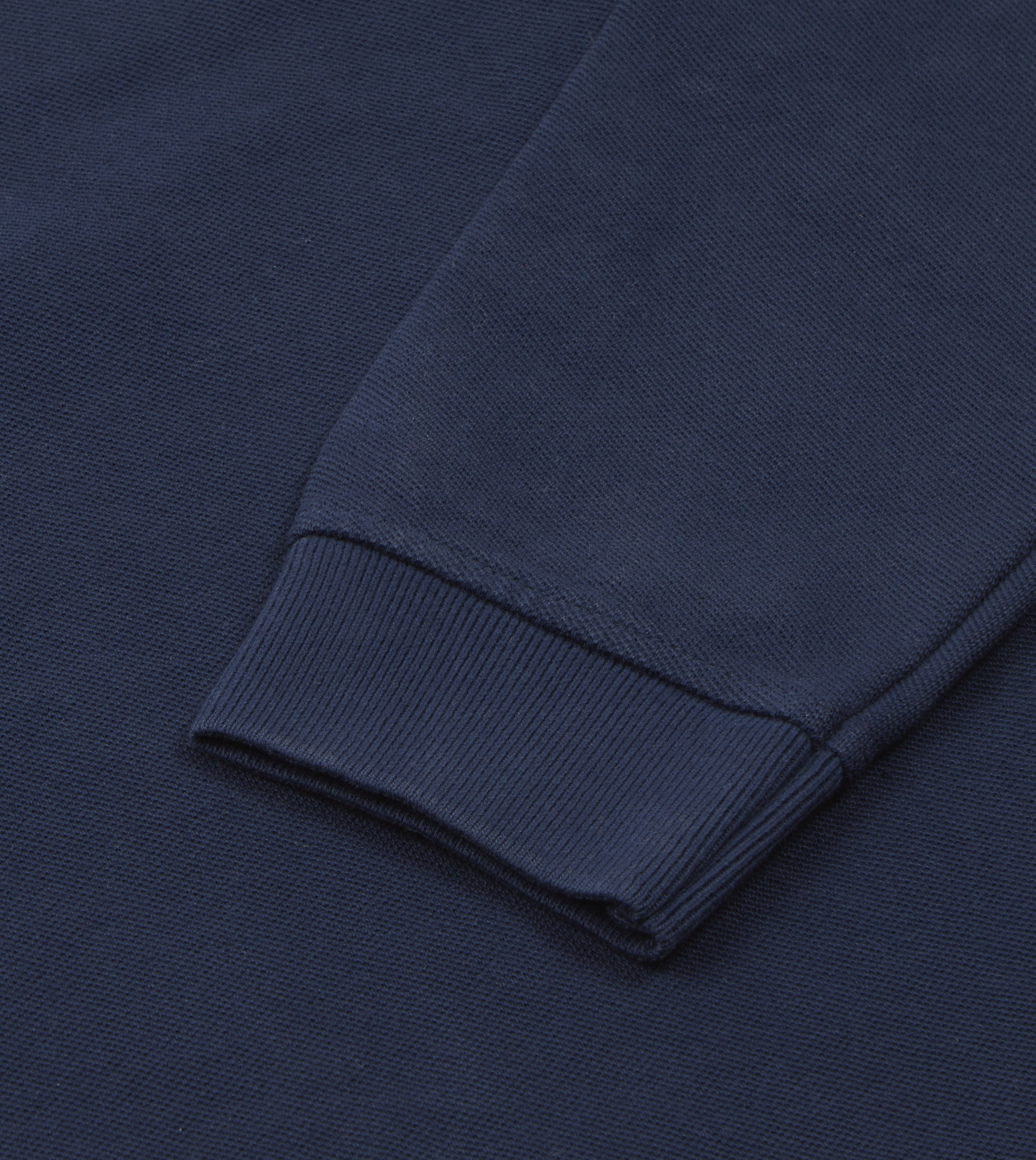 Light Navy Pique Cotton Long-Sleeve Polo Shirt