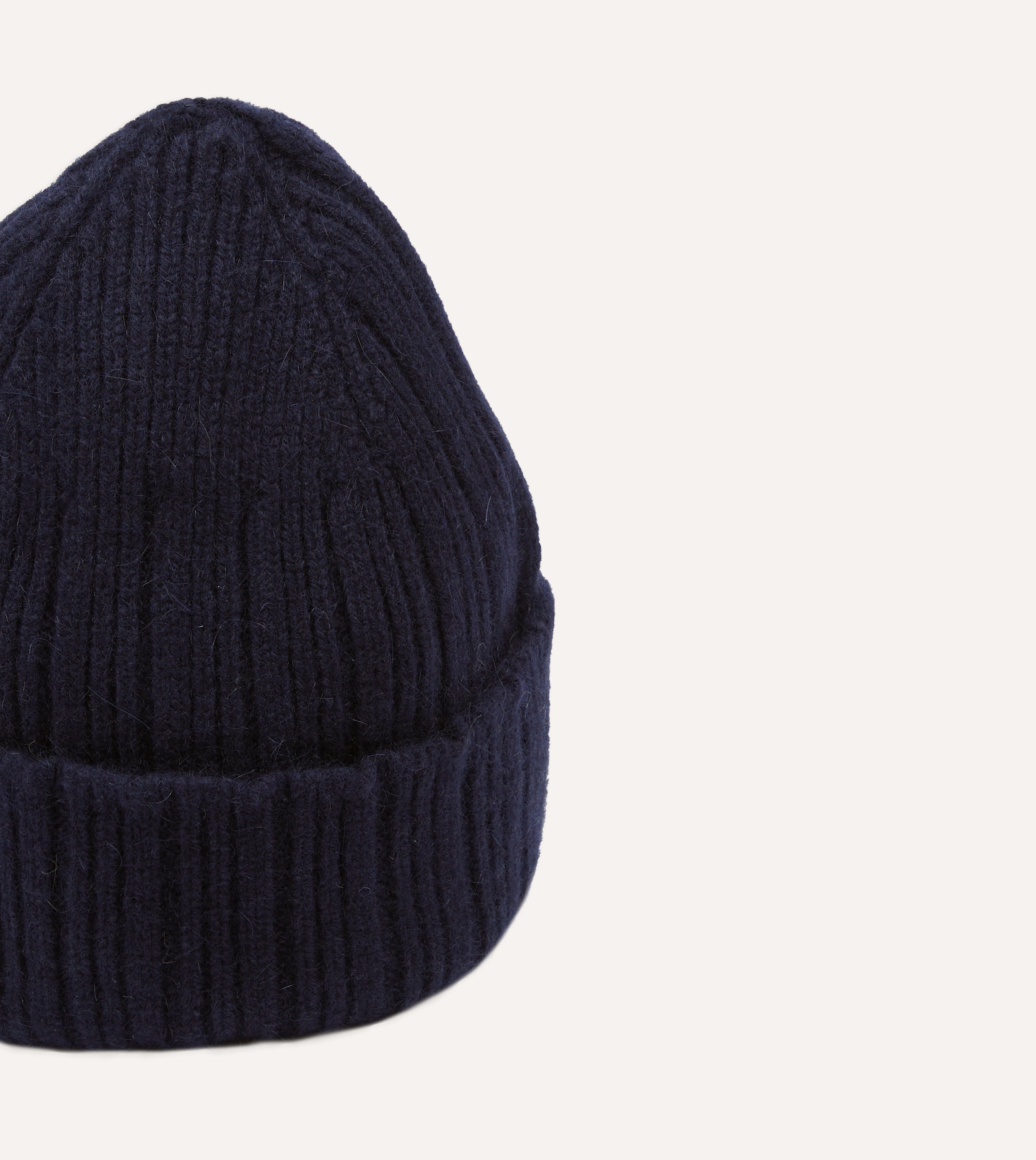 Navy Angora Lambswool Ribbed Knit Cap