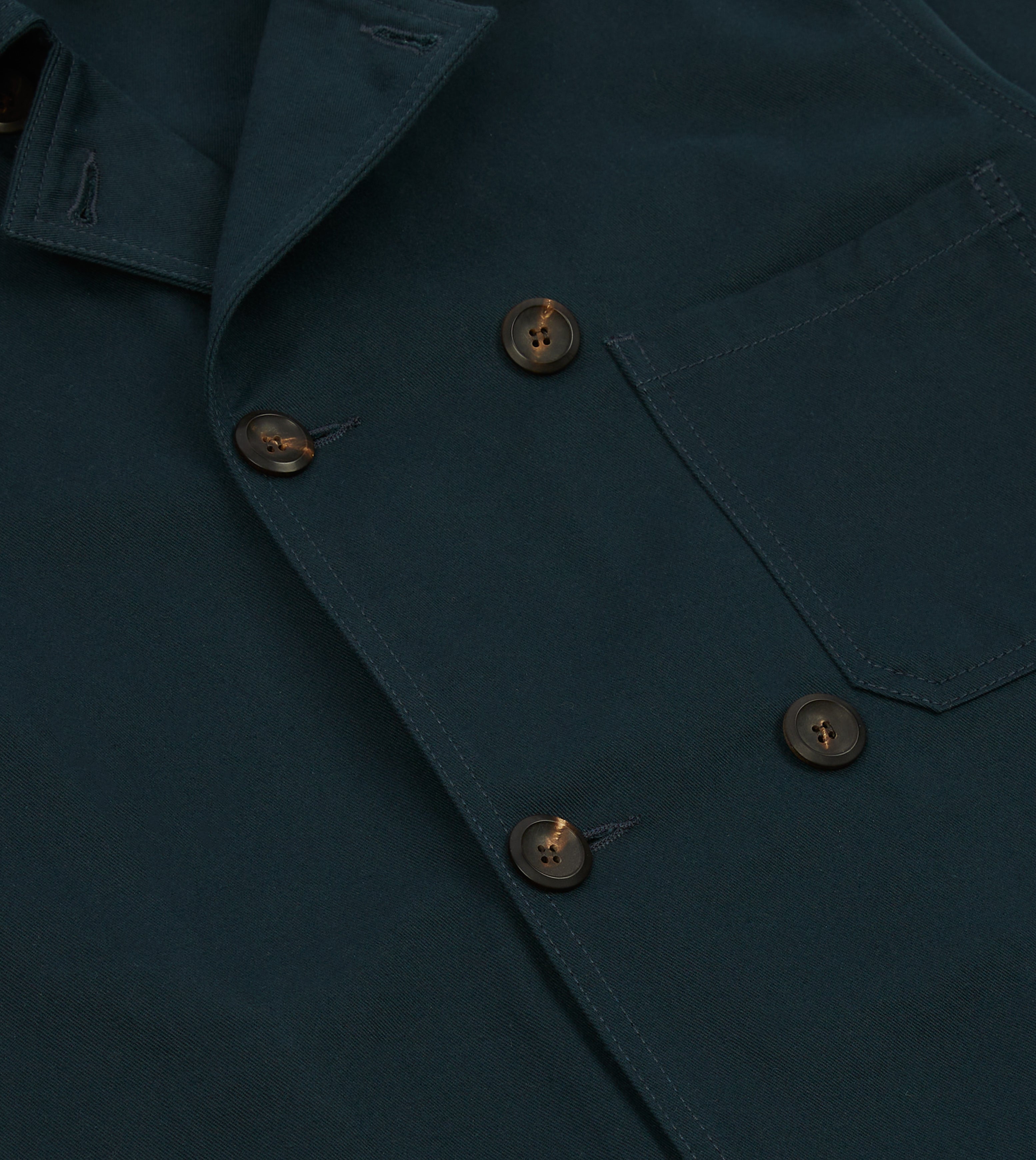 A new double-breasted style of our signature chore jacket, drawing on the hardwearing clothes worn by sculptors, painters, poets and stevedores throughout the 20th century. Made from a hardy 8.8oz Japanese vintage washed chino cloth, the jacket features 4x2 horn buttons and three ample outside pockets, along with twin internal poacher pockets.