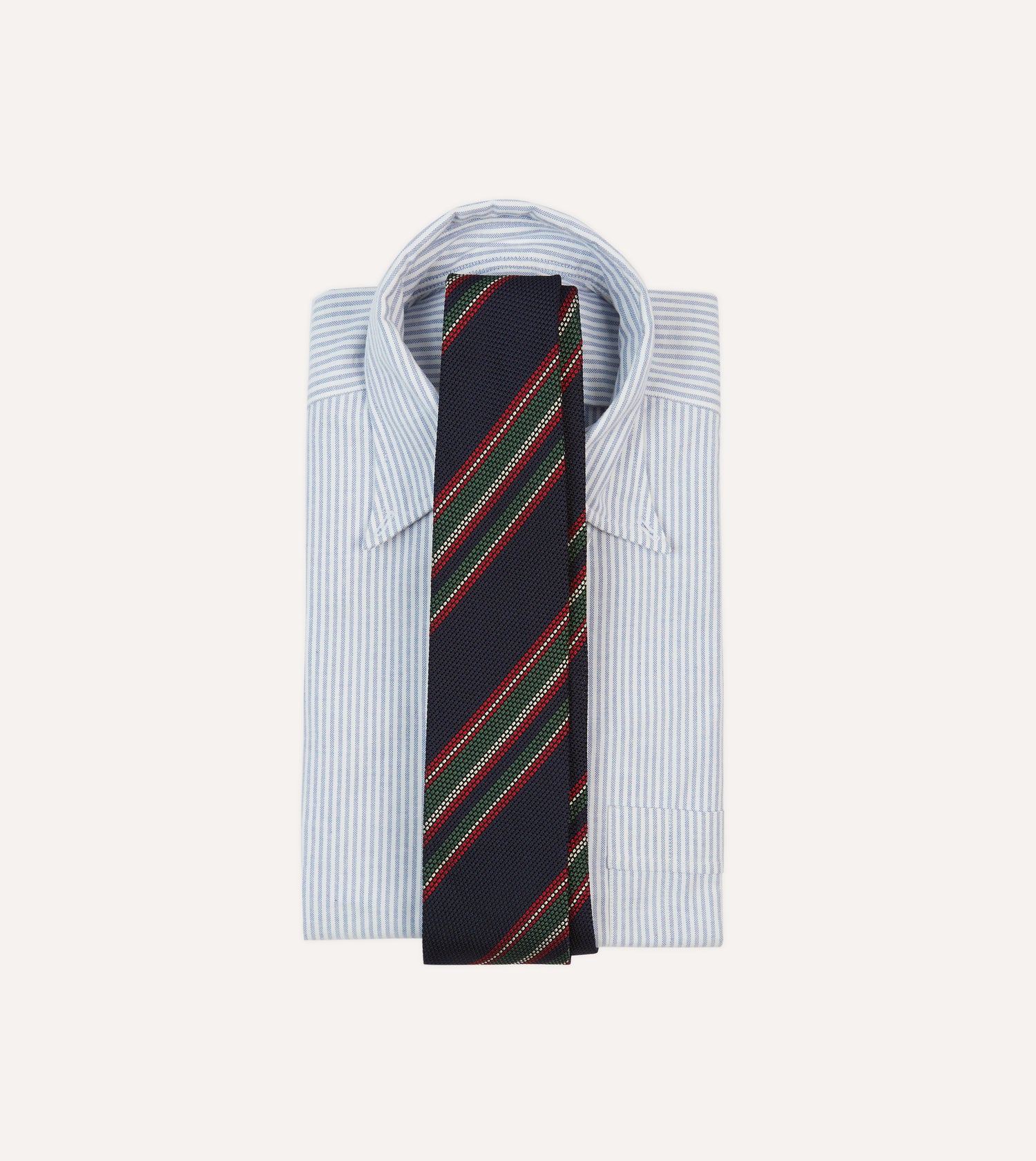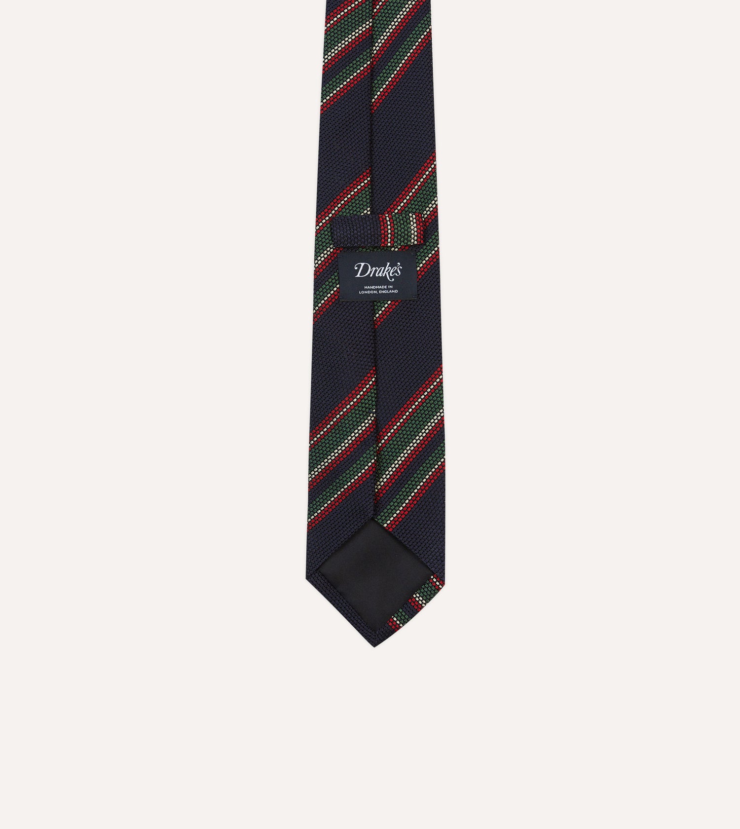 Navy, Green and Red Stripe Hand Rolled Silk Grenadine Tie