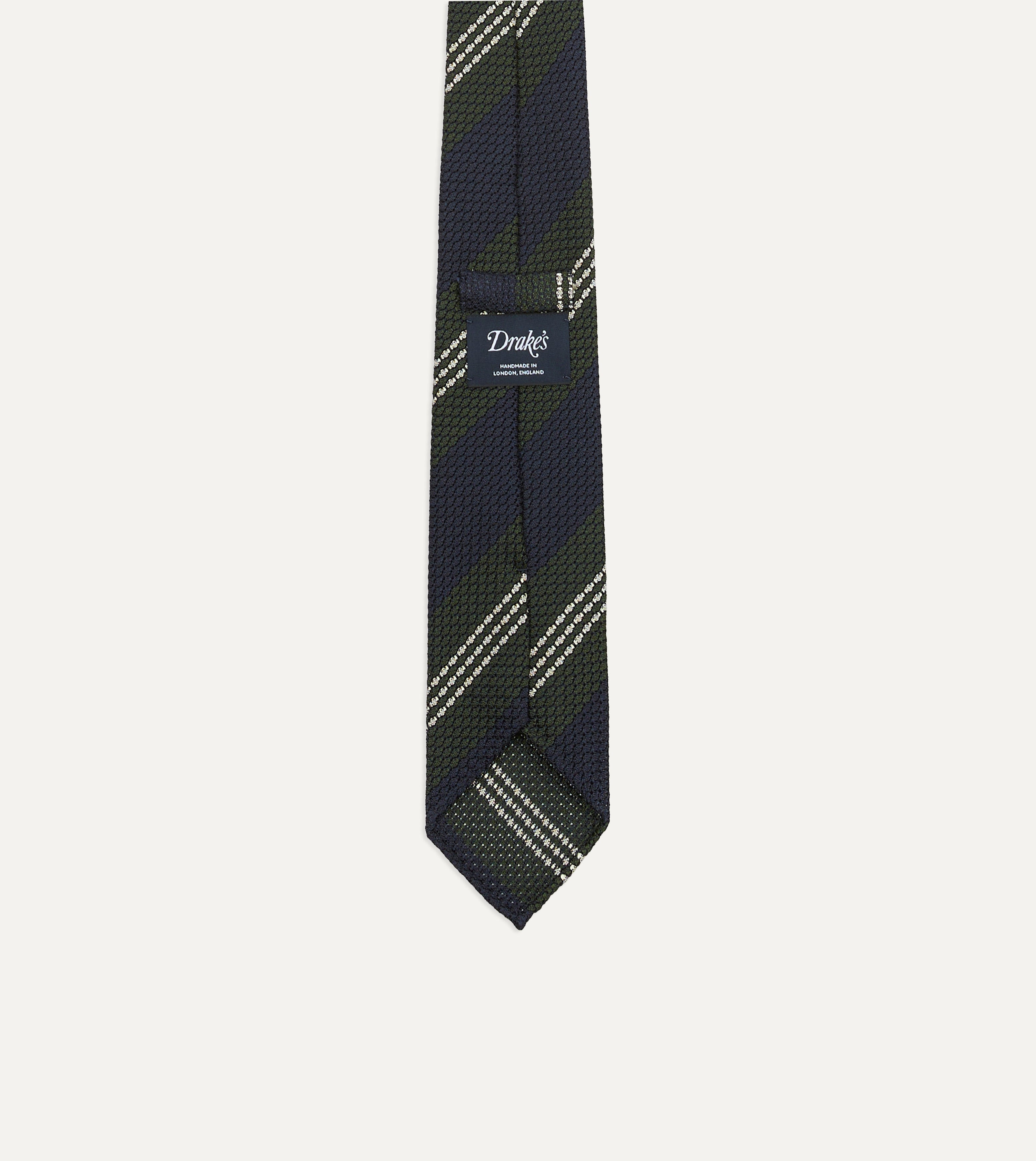 Navy, Green and White Multi Stripe Silk Grenadine Tie