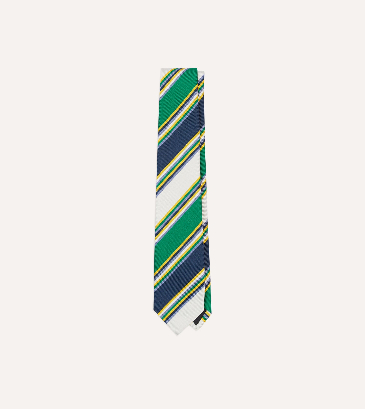 Navy, Green and White Stripe Mogador Silk Tipped Tie