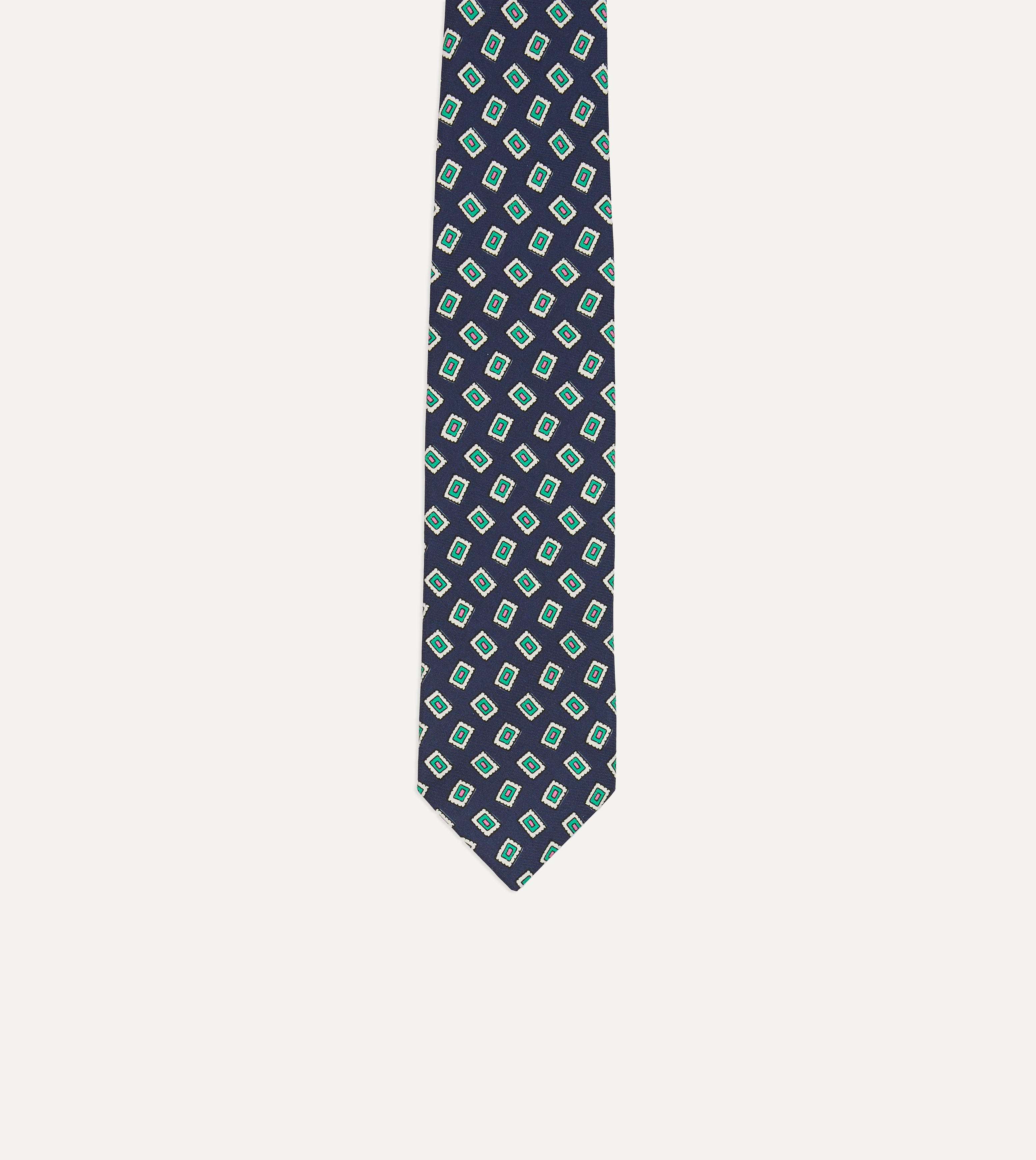 An ornate medallion design simply exudes elegance, particularly when printed on pure silk and hand rolled by our dedicated tiemakers in the heart of east London.