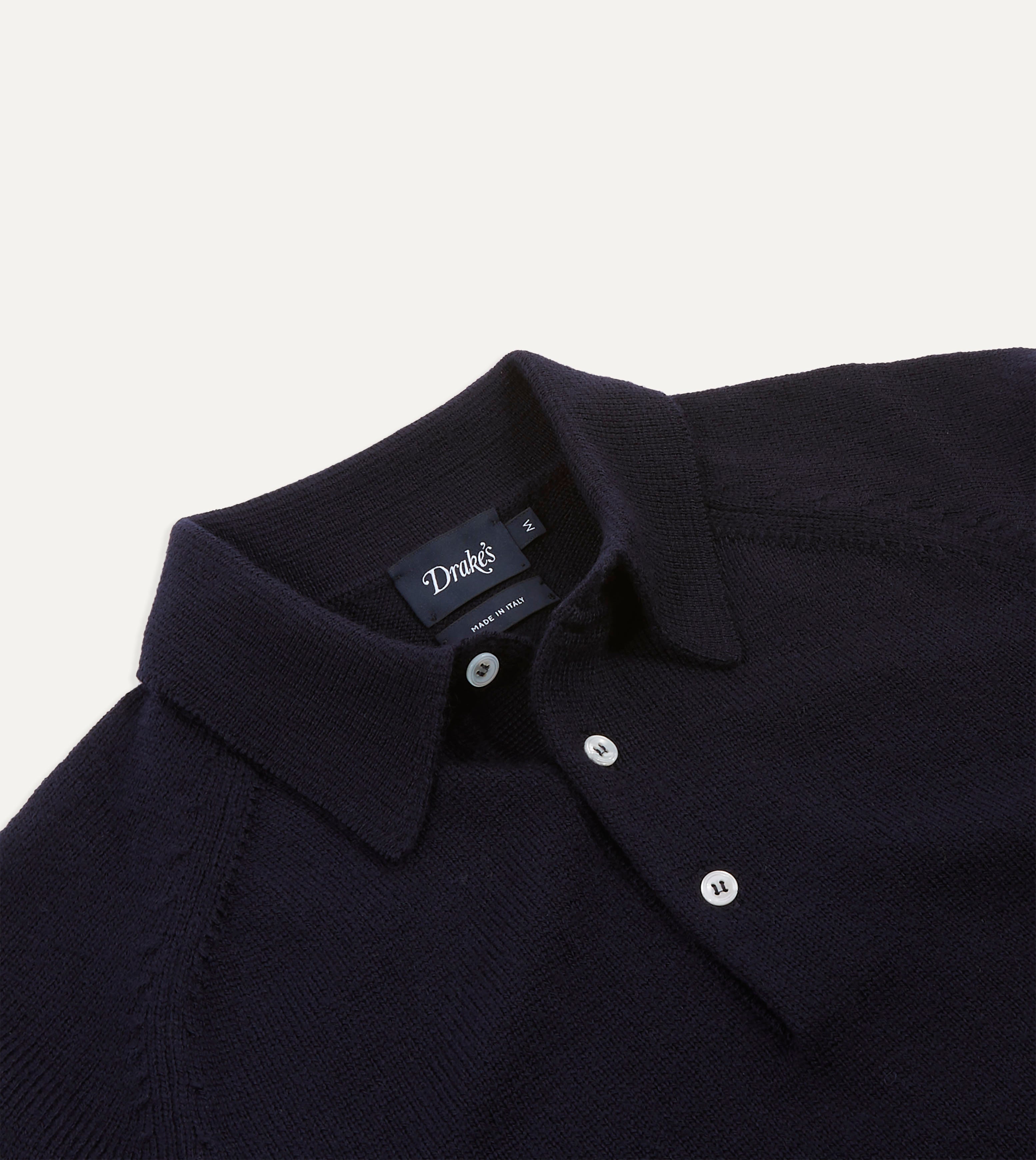 One of the latest arrivals in our knitwear family, and drawing inspiration from the classic polo shirts seen on players of the eponymous game, the Drake's long sleeve polo shirt is knitted in a Merino wool for an insulating yet breathable take on a historical and indefatigable piece of sporting kit.