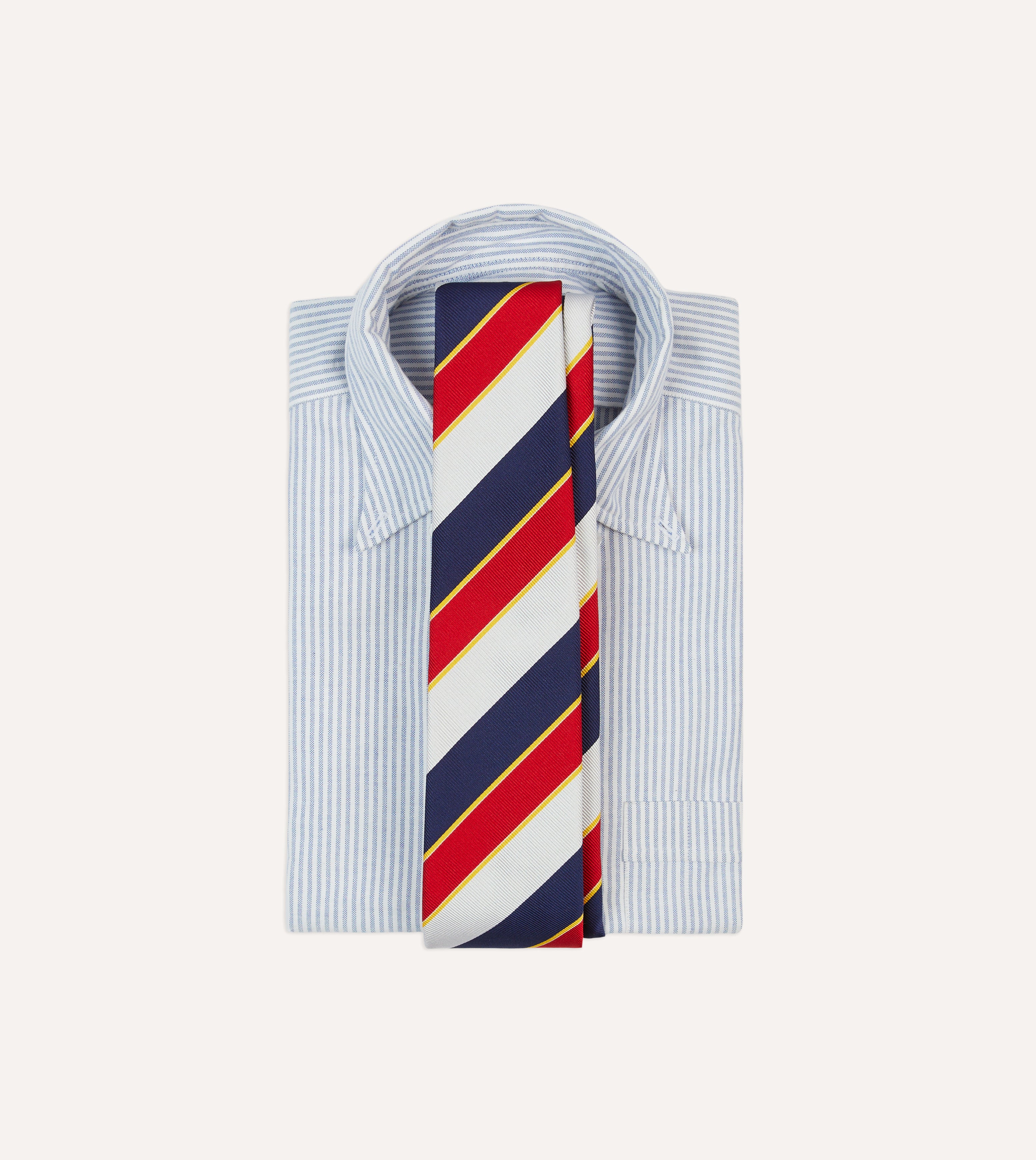 A striped pure silk tie is one of the most enduring pieces of neckwear available, redolent of earlier periods of style, while retaining a distinctly modern feel.