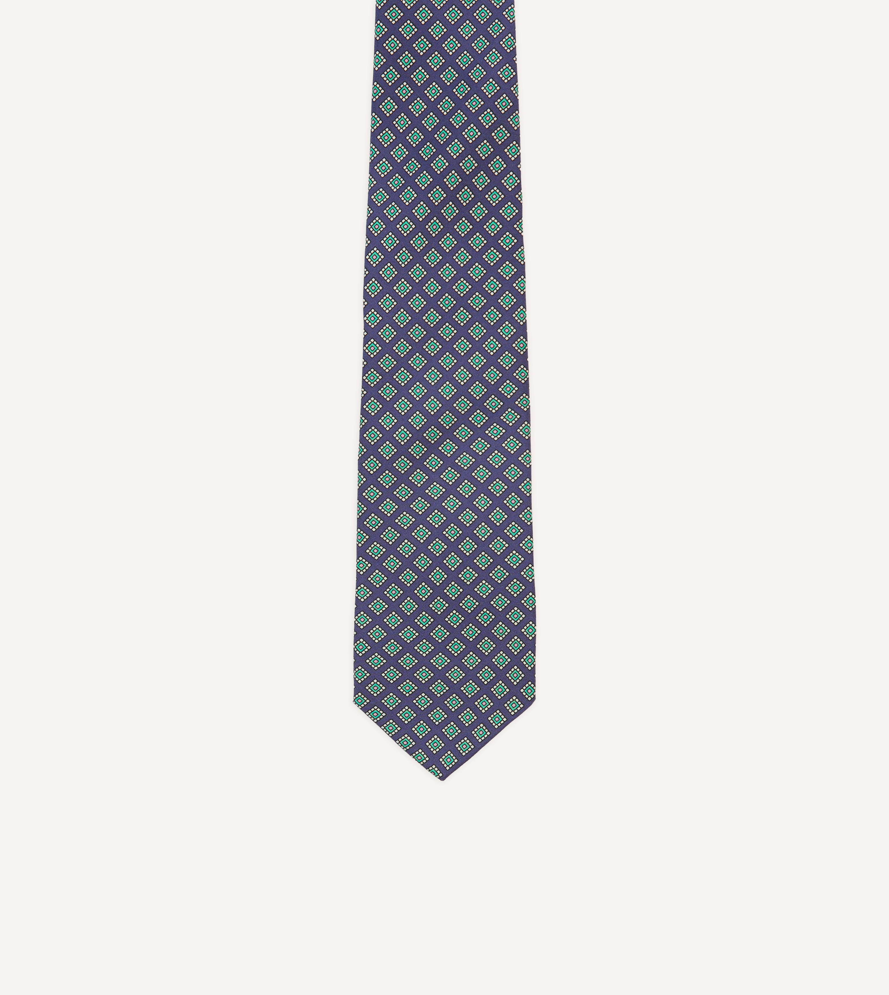 Navy Square Medallion Self-Tipped Silk Tie