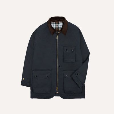 A hearty waxed cotton composition offers unrivalled patination that will only improve with wear, while patch and stud bellows pockets provide ample utility whether strolling in town or stalking in the country.