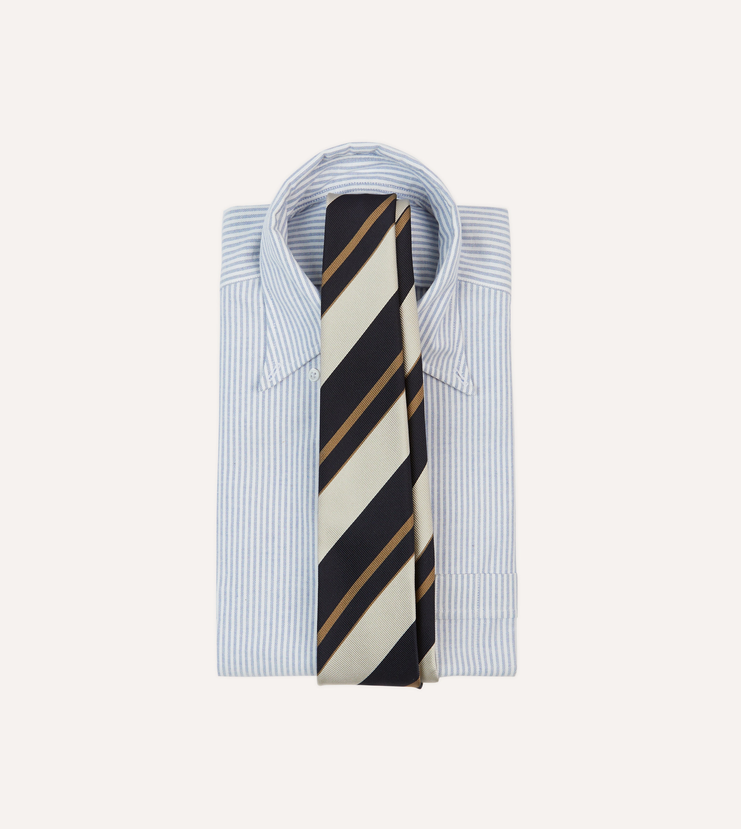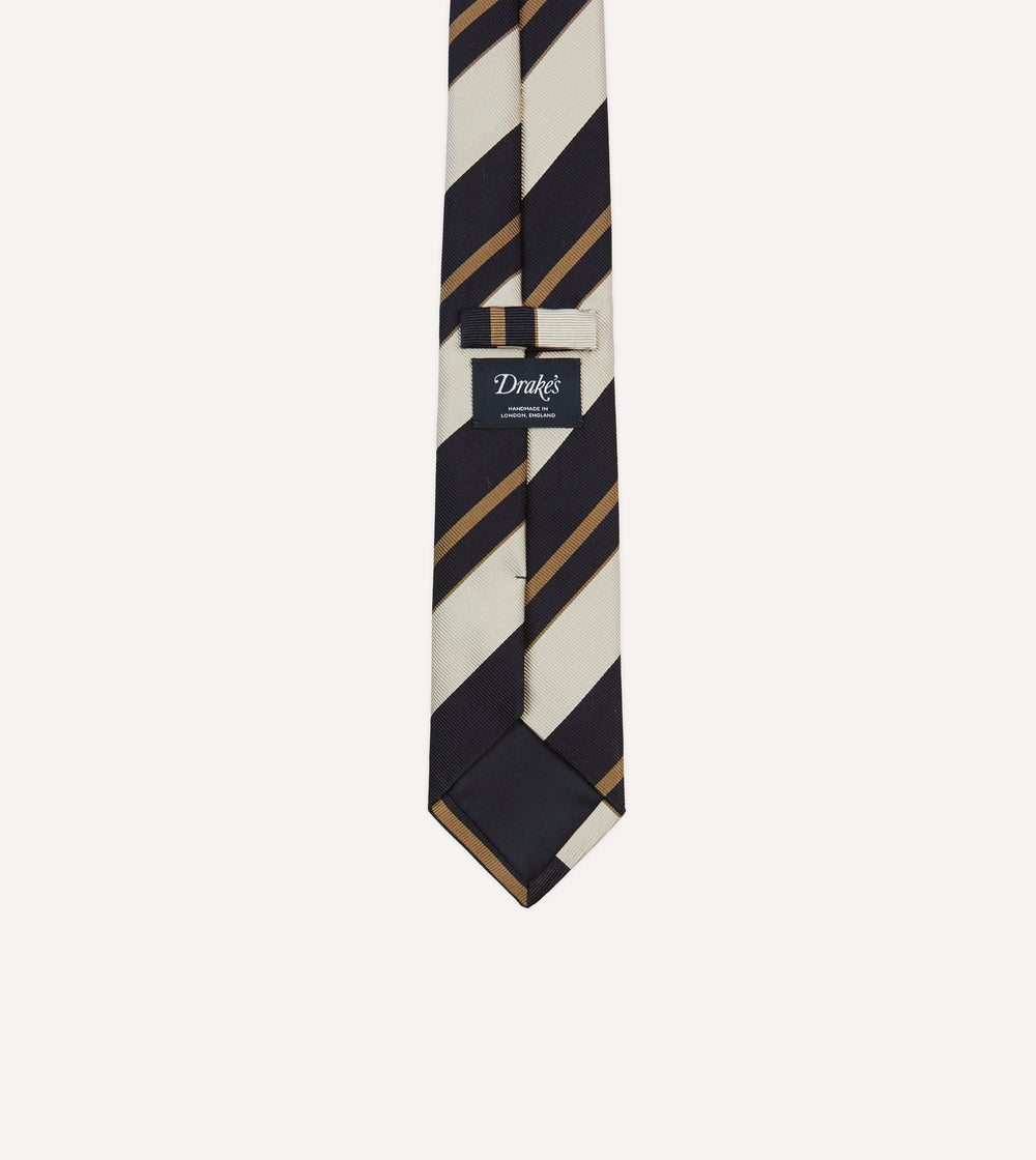Navy, White and Fawn Stripe Repp Silk Tipped Tie