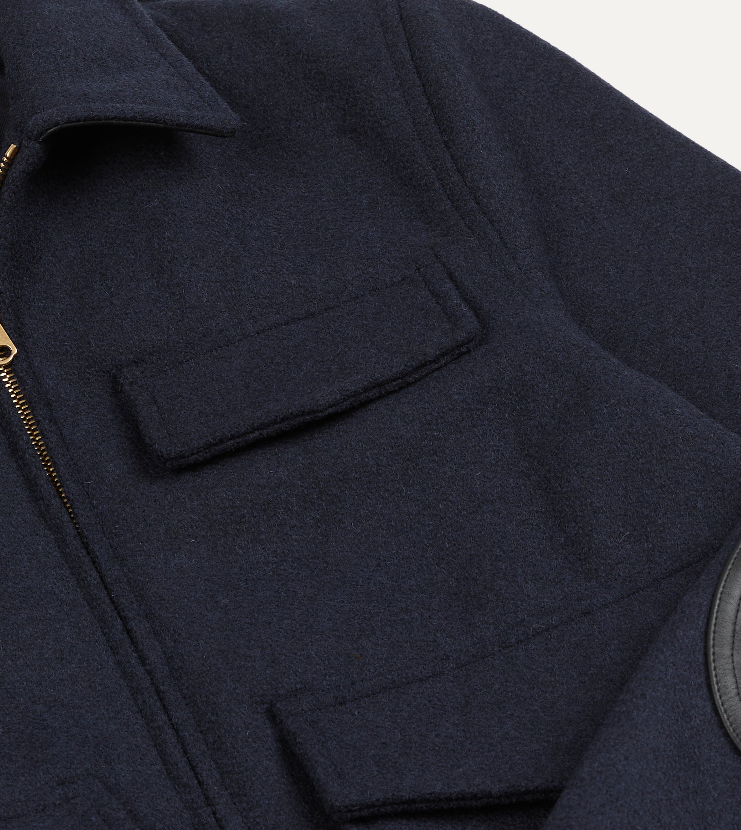 The silhouette has been sharpened from vintage originals, yet retains an easy fullness that speaks to the jacket’s military origins. Functional details include a flapped chest pocket, leather-welted handwarmer pockets with concealed snaps, and a spacious internal poacher’s pocket.