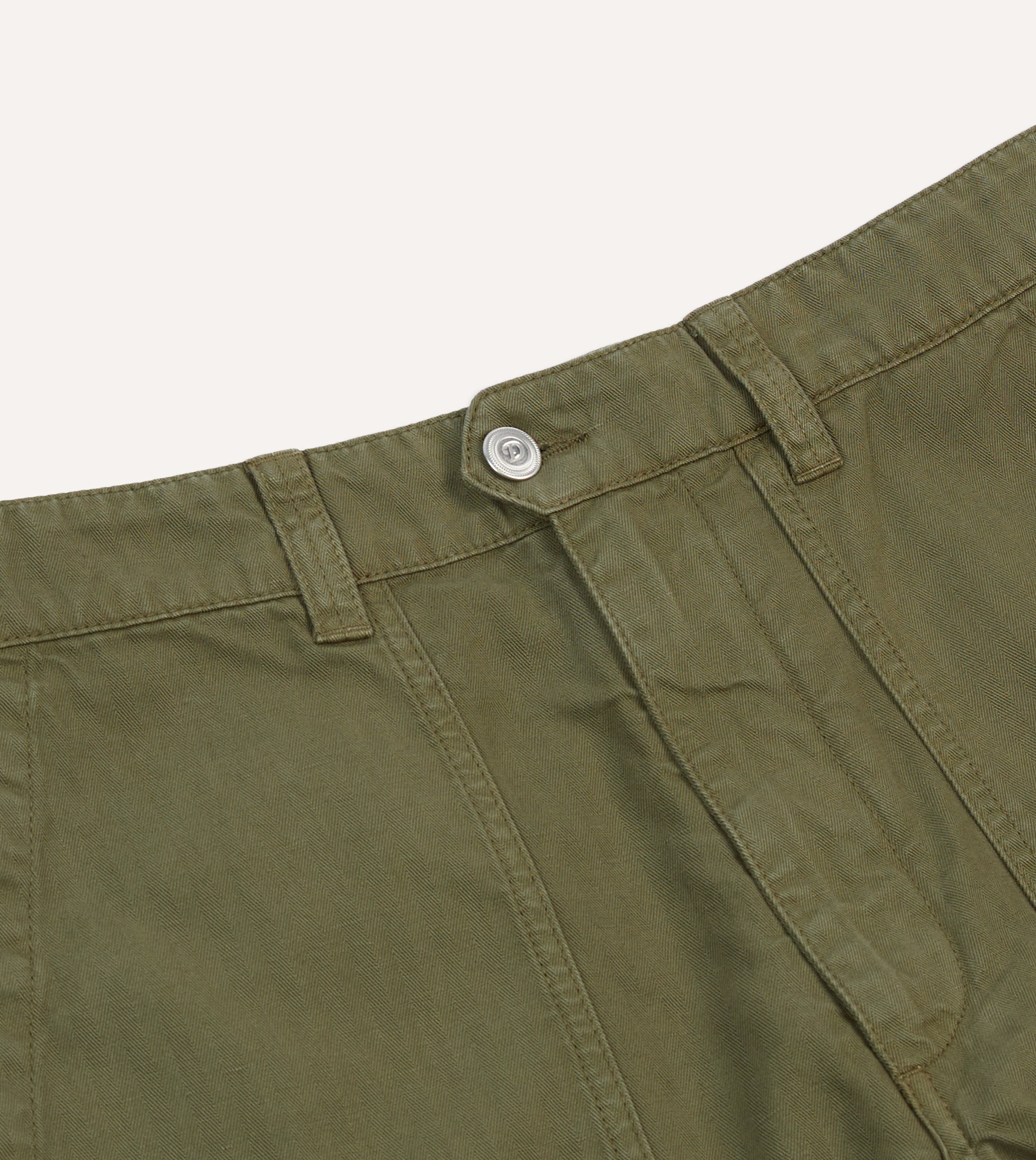Olive Cotton-Linen Herringbone Fatigue Shorts
