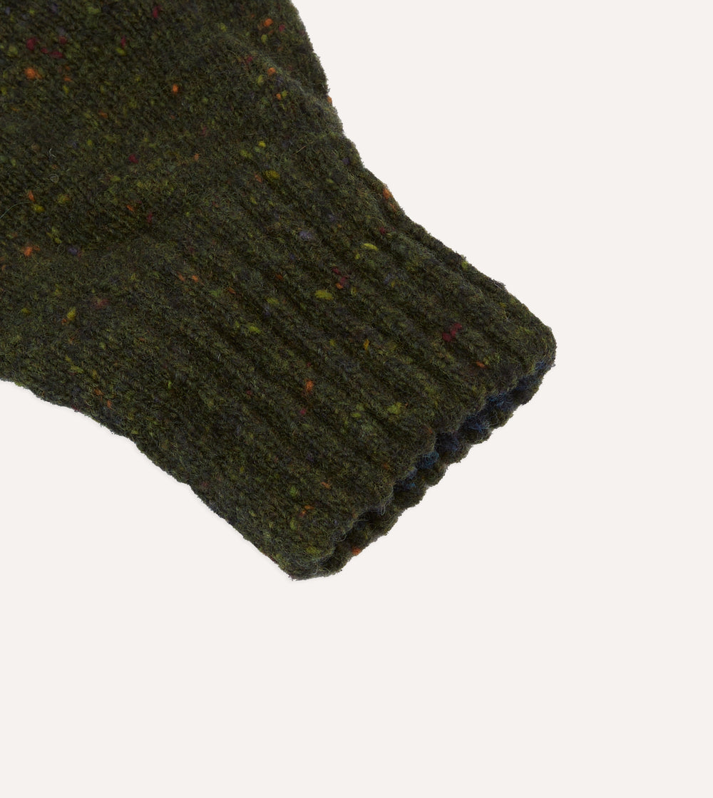 A good pair of knitted gloves are as practical as they are stylish, offering up protection from the cold when the temperature drops. Knitted in Ayrshire, Scotland from breathable but insulating Merino wool, the donegal flecking and contrasting interior cuffs add a pop of colour to compliment your Winter coat.