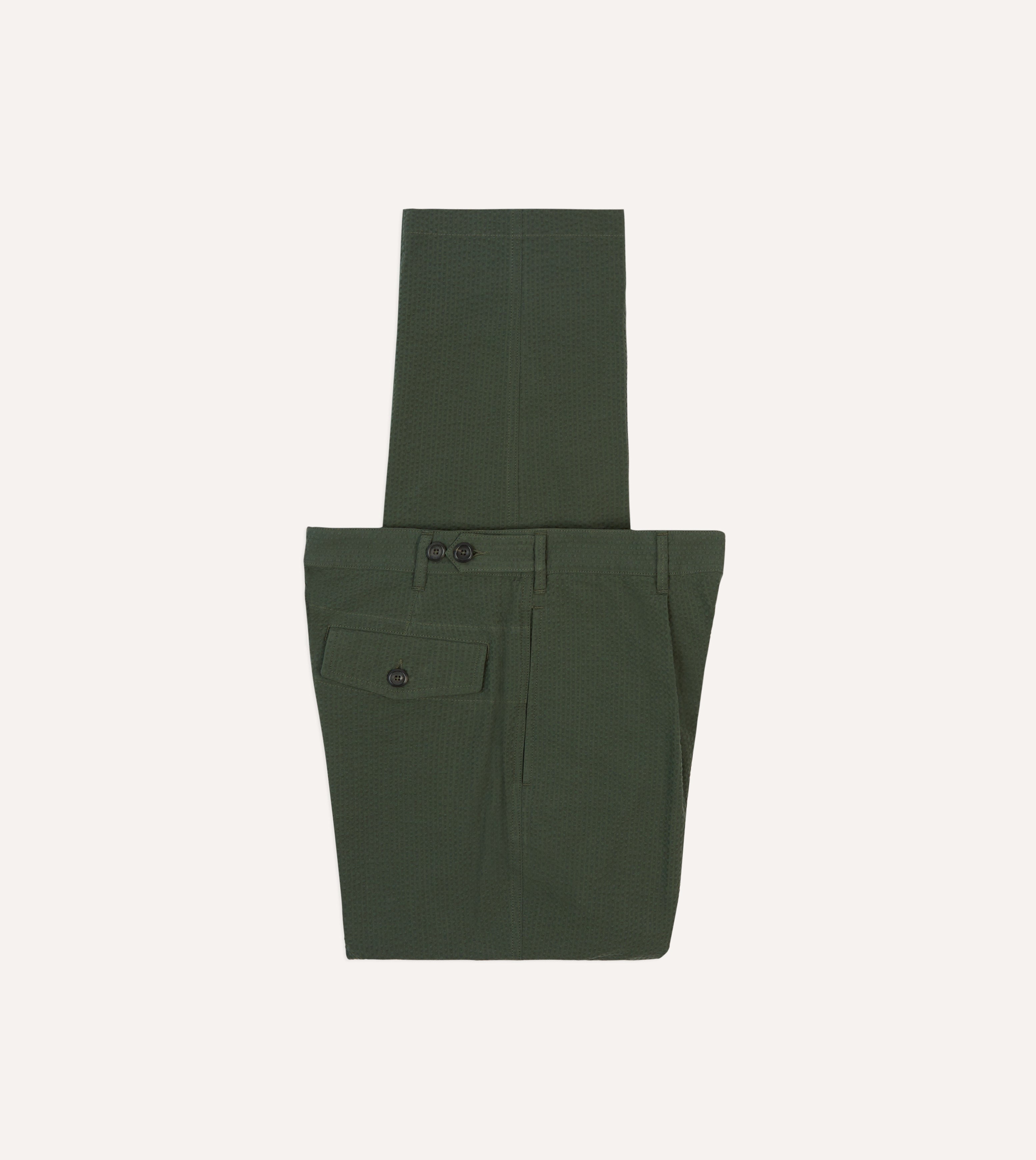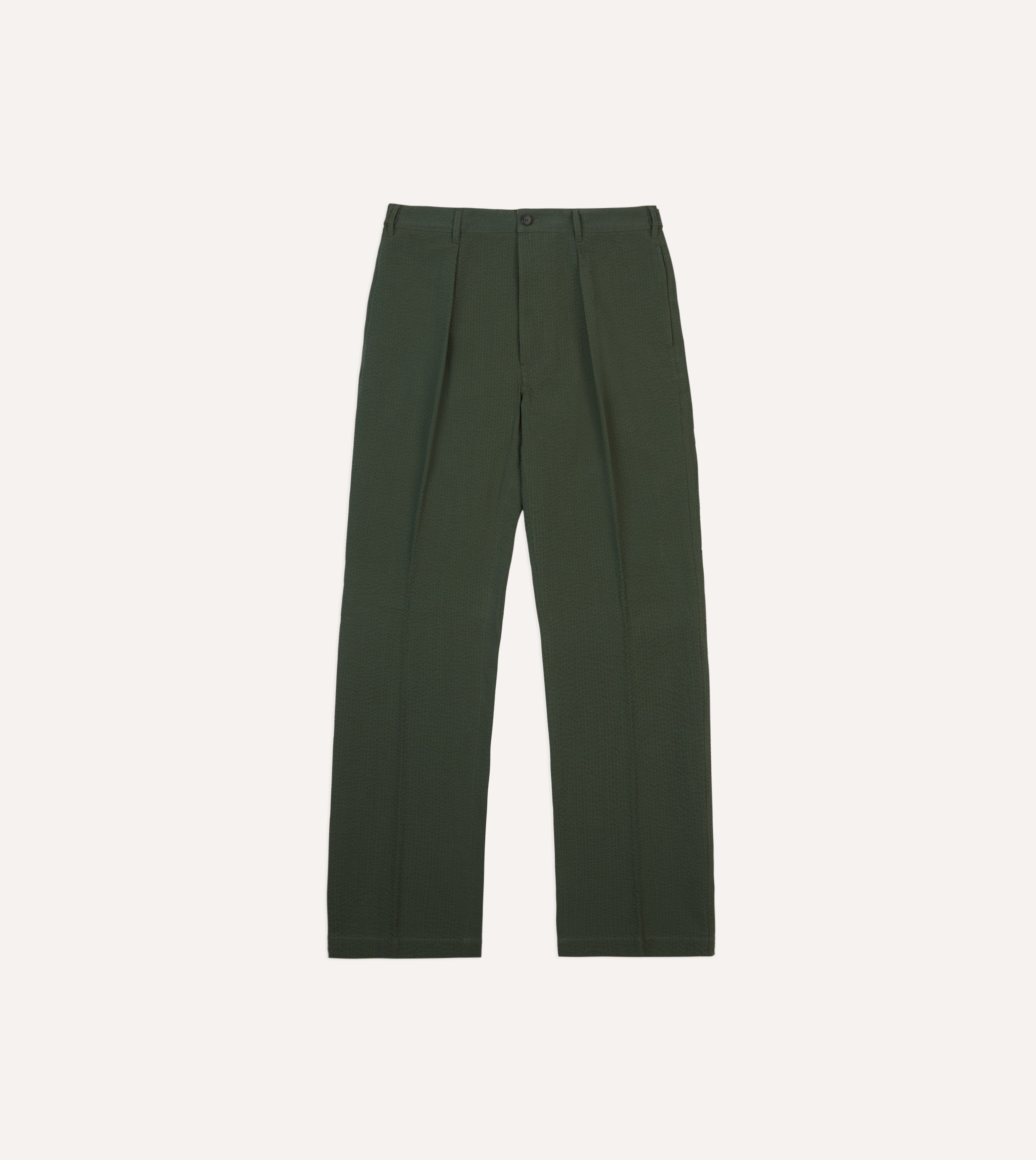 Cut from a lightweight seersucker woven outside Milan by a mill at the forefront of cloth production since 1874. Pair it with the matching jacket for an informal take on the classic two-piece suit.