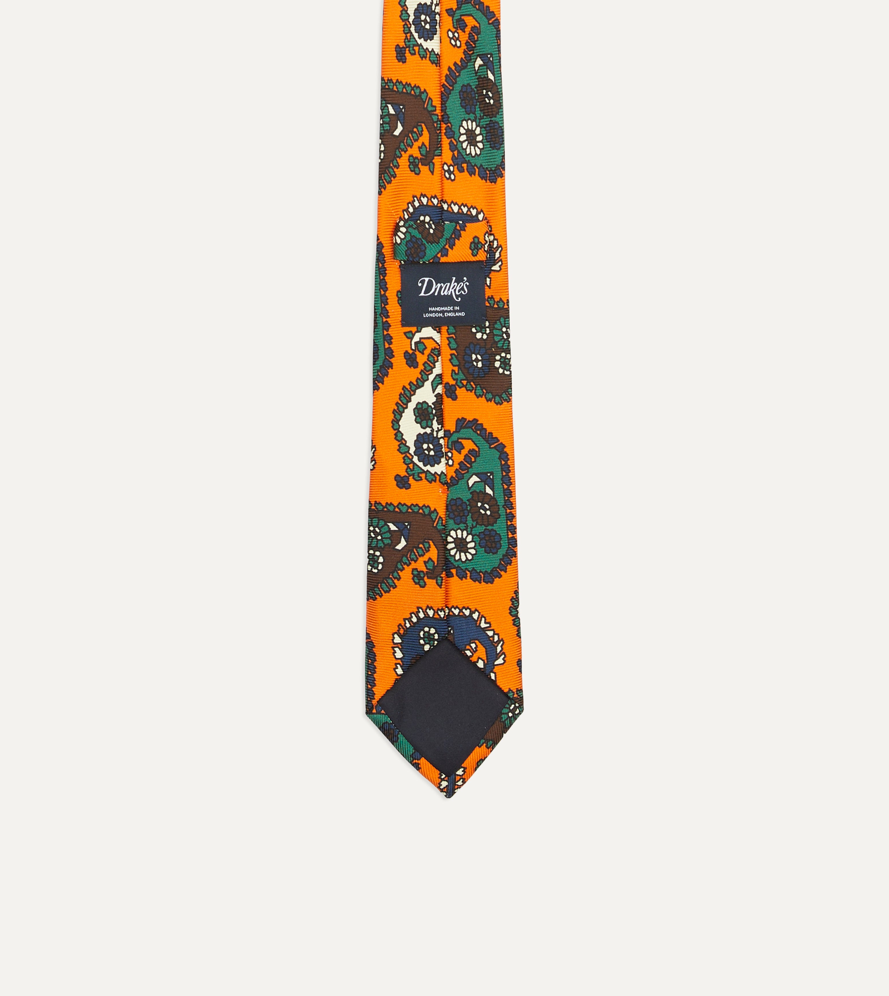 This design, direct from our extensive archive and printed on a substantial twill silk, features a classic paisley, and is reminiscent of the elegant late 1960s neckwear favoured by rockstars and royalty alike. The tie is pure silk, made by hand in London.