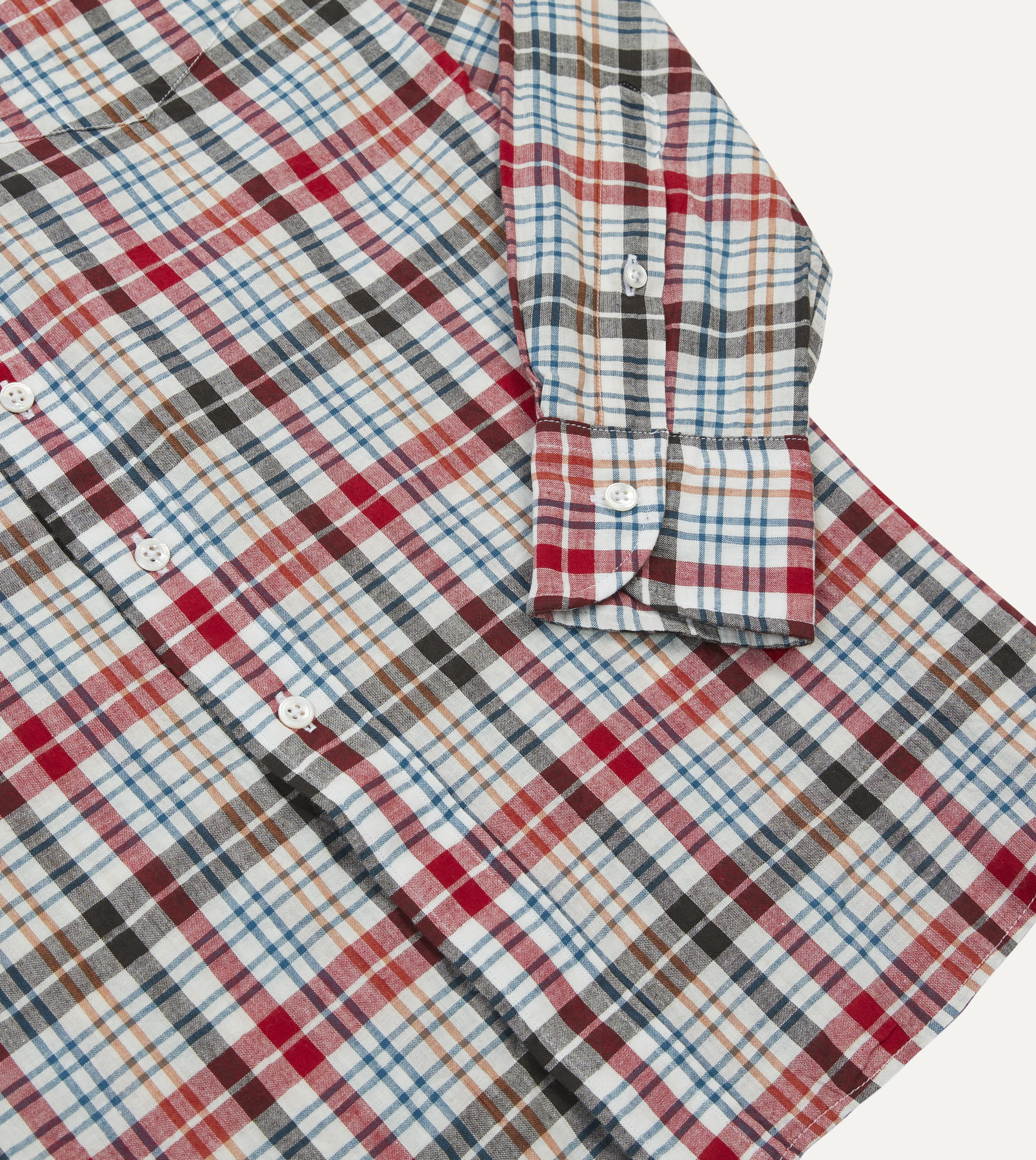 This particular cloth is woven in a classic check, with colours typical of the natural dyeing process madras cotton undergoes, and as such is guaranteed to bleed with washing and wear over the years.