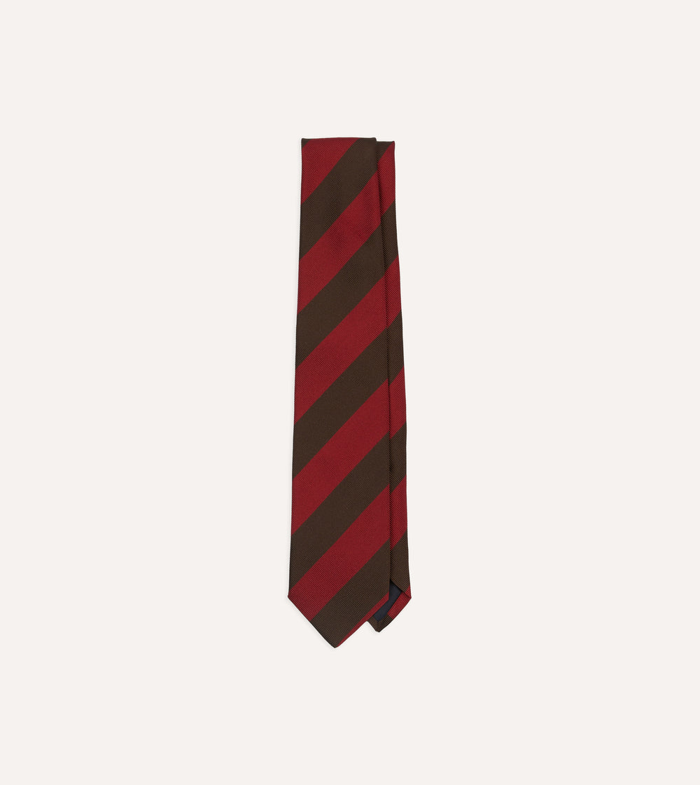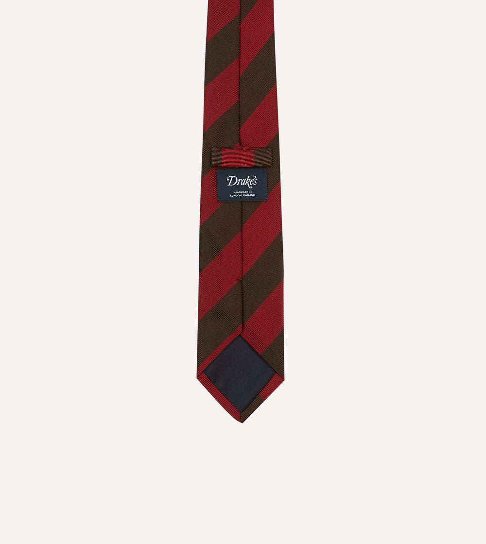 Red and Brown Block Stripe Mogador Silk Tipped Tie