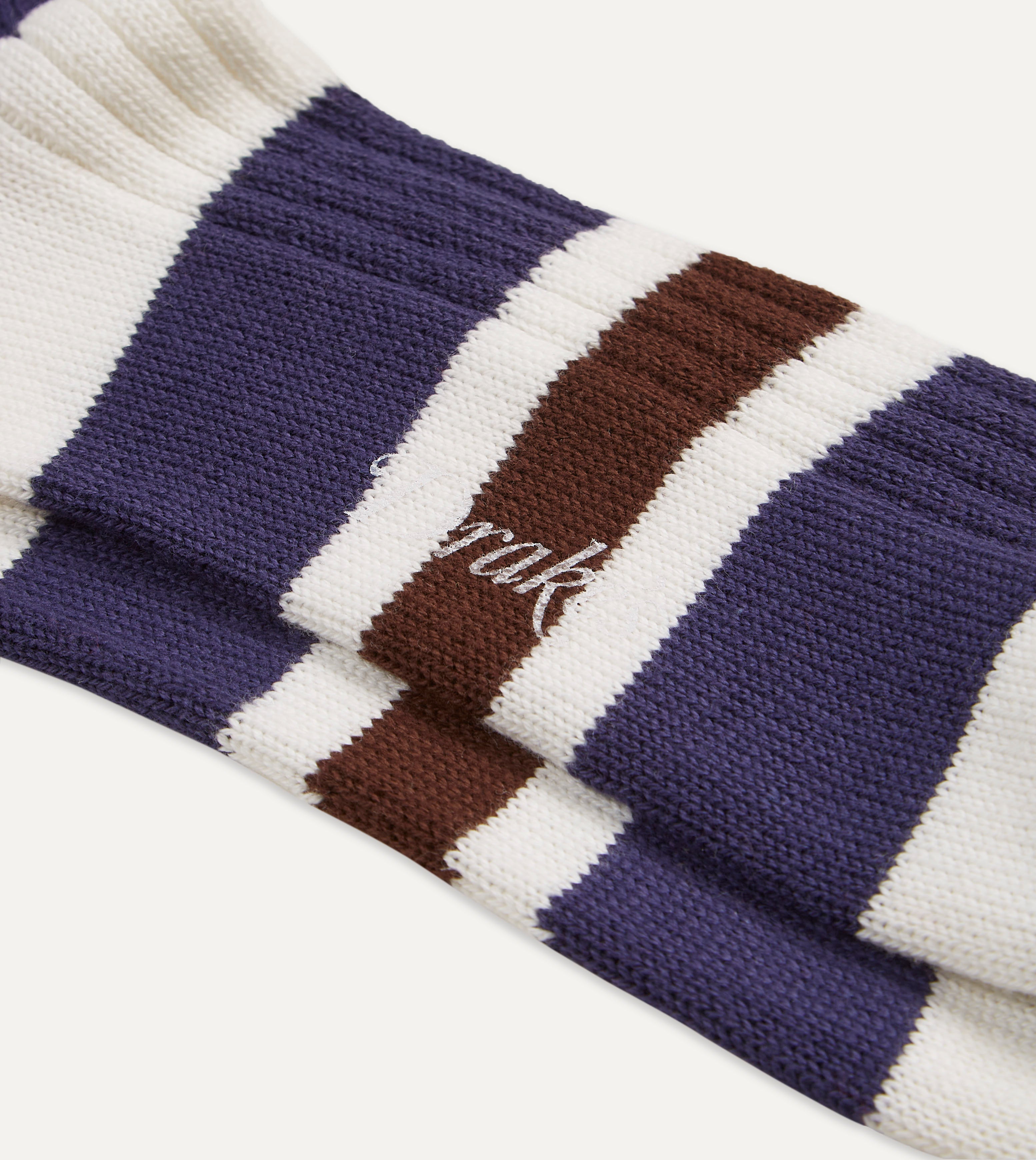The ultimate sports socks are here, knitted in Wales with a nod to Ivy attire. Featuring a traditional sport stripe with a ribbed knit design, they are perfect for both on and off the court.