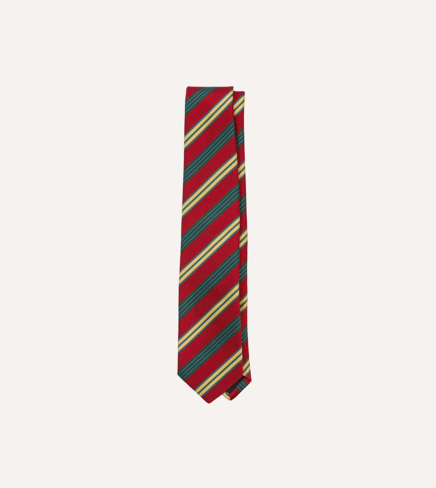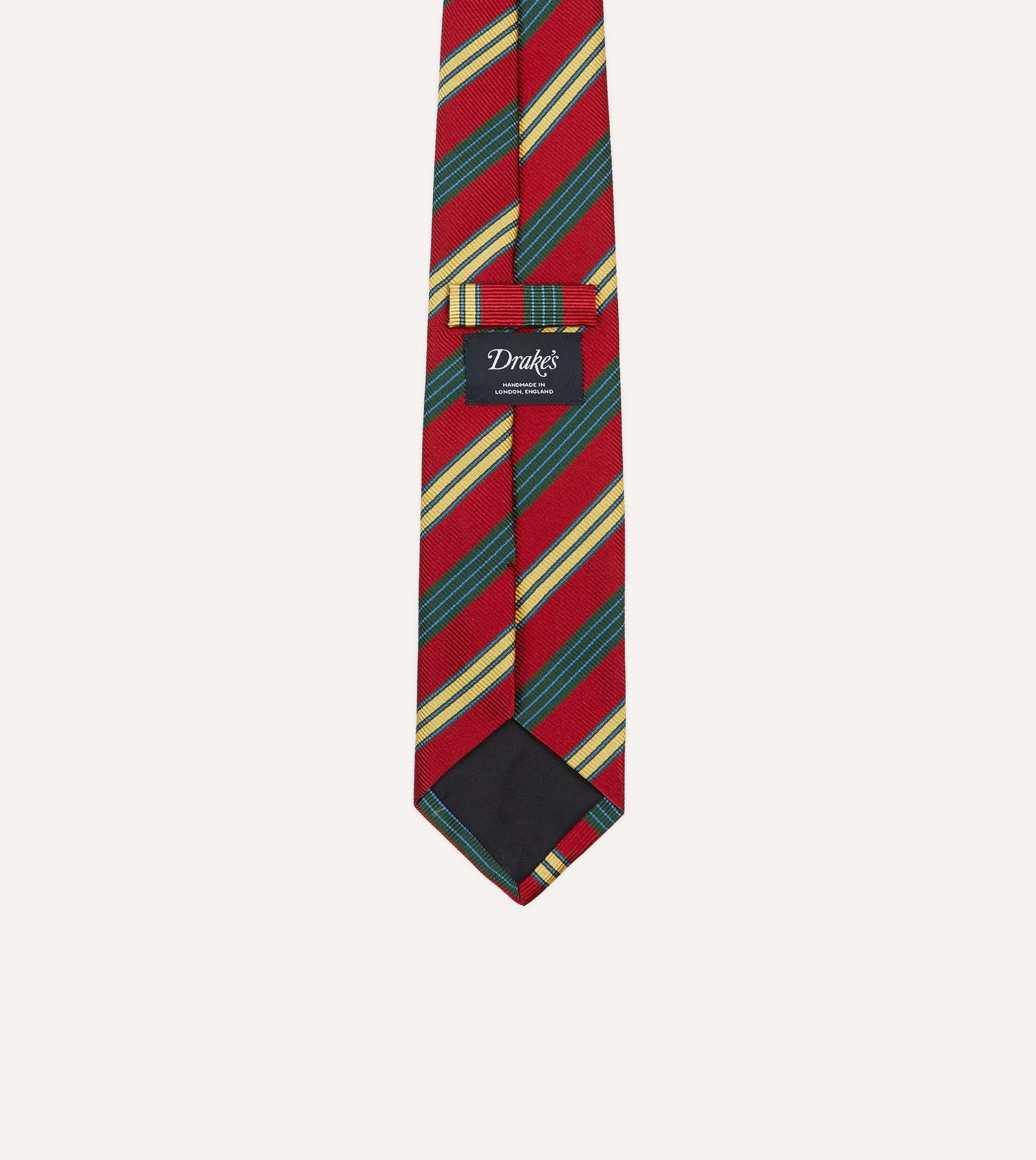 Red and Yellow Triple Stripe Repp Silk Tipped Tie
