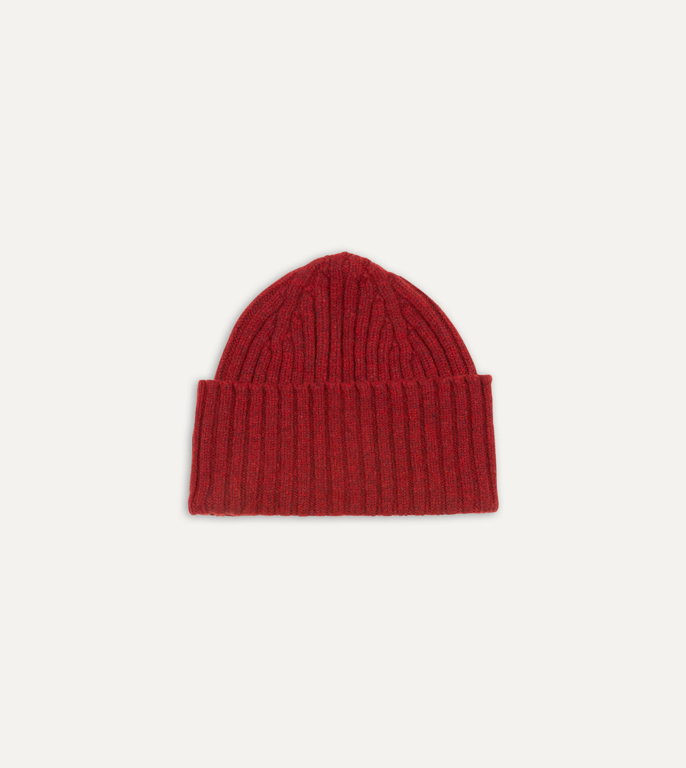 Red Lambswool Ribbed Knit Cap