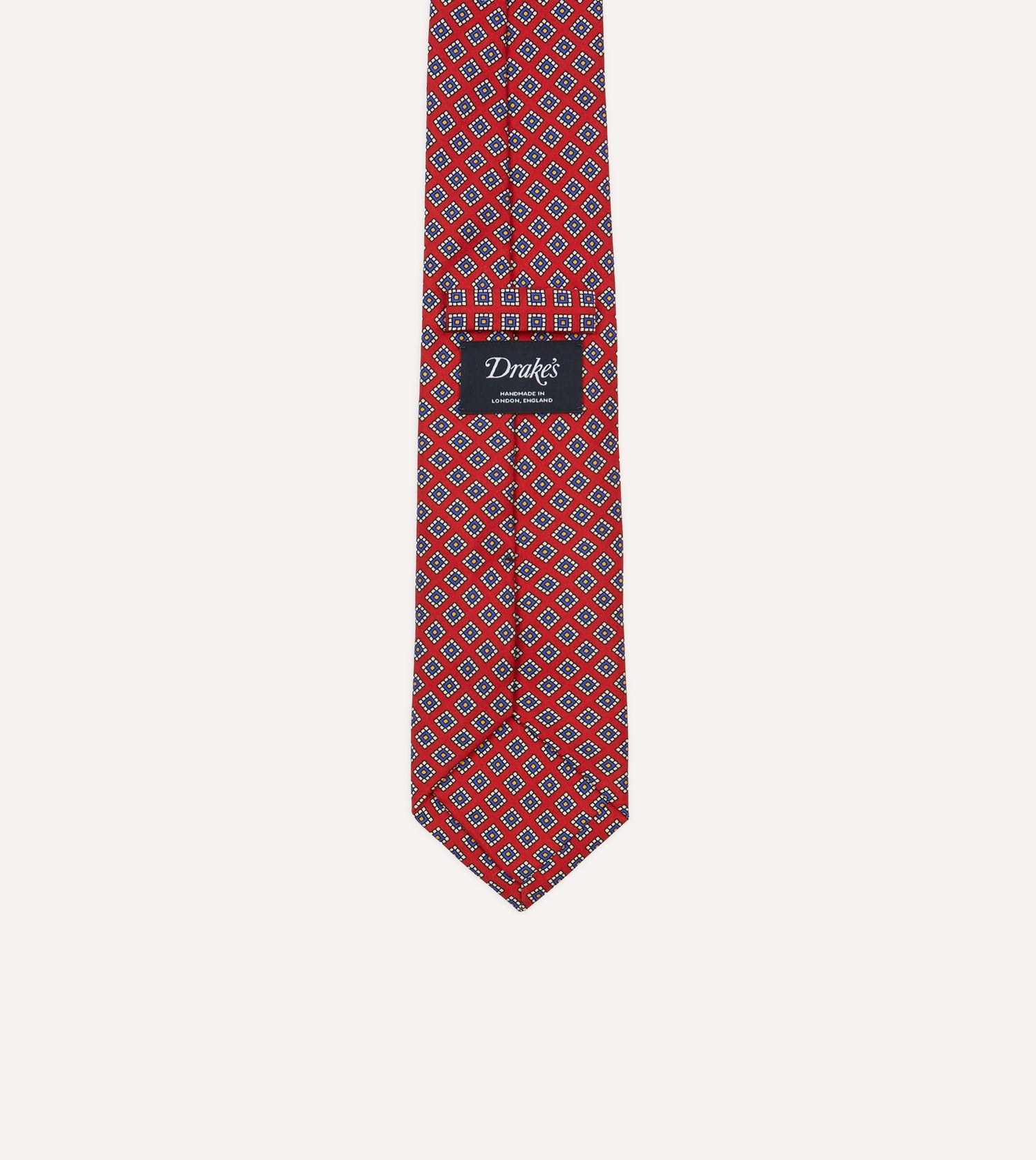 An ornate square motif simply exudes elegance, particularly when printed on pure silk and hand rolled by our dedicated tiemakers in the heart of east London.