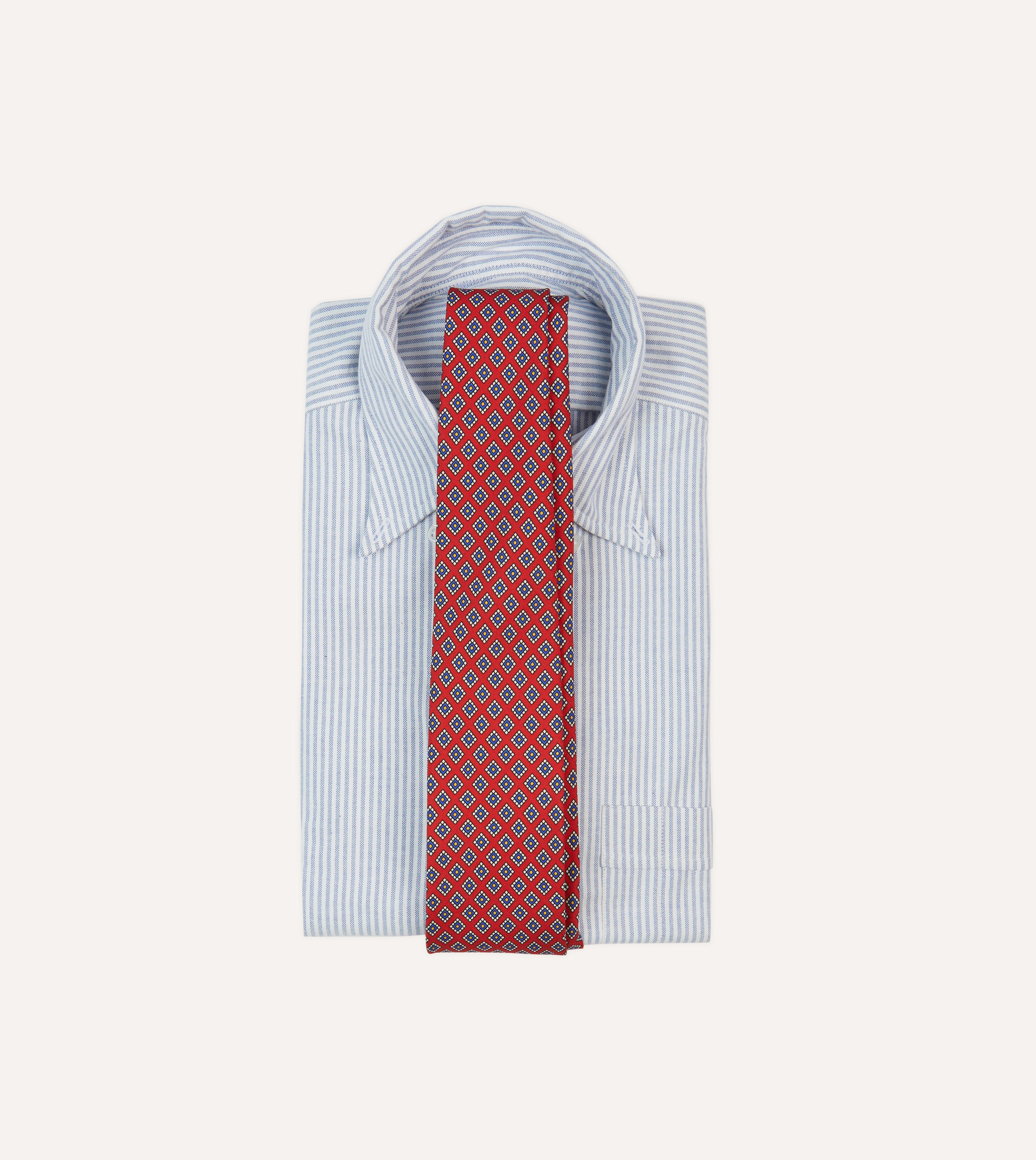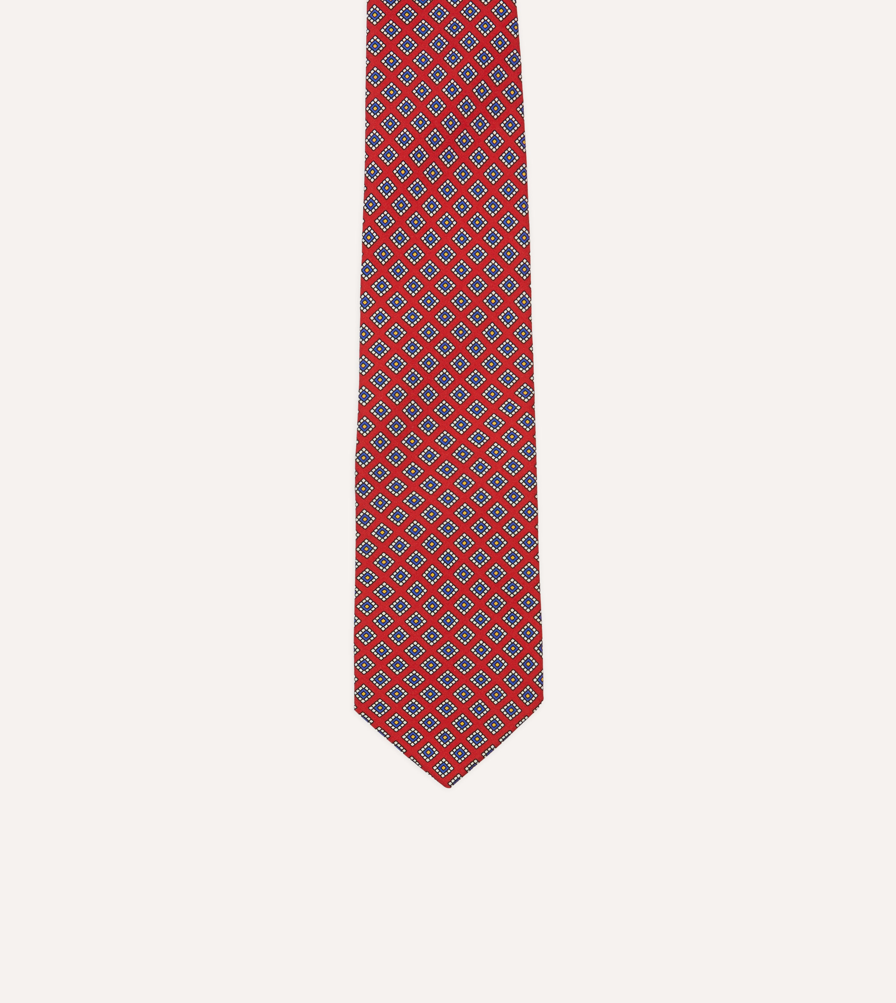 An ornate square motif simply exudes elegance, particularly when printed on pure silk and hand rolled by our dedicated tiemakers in the heart of east London.