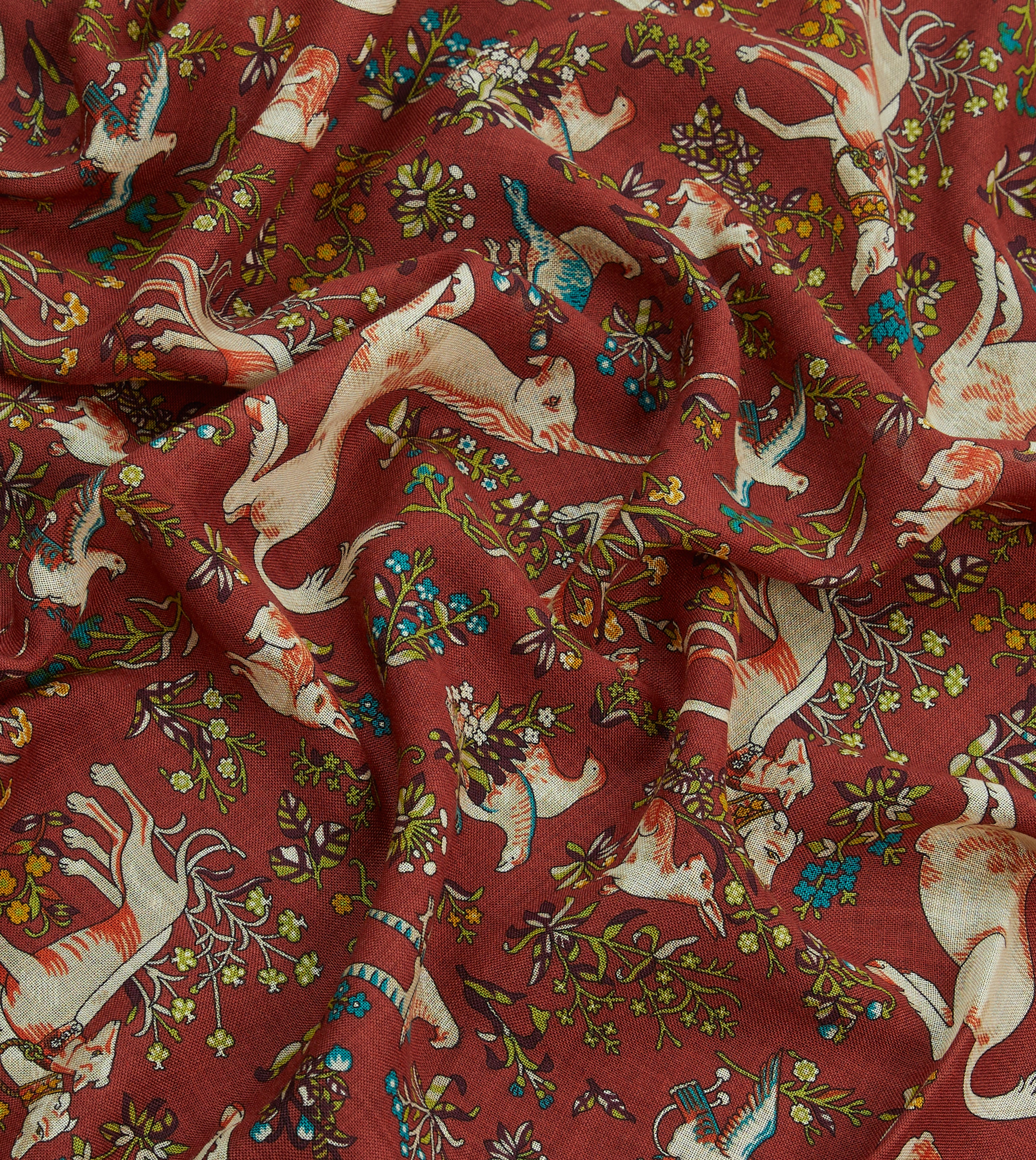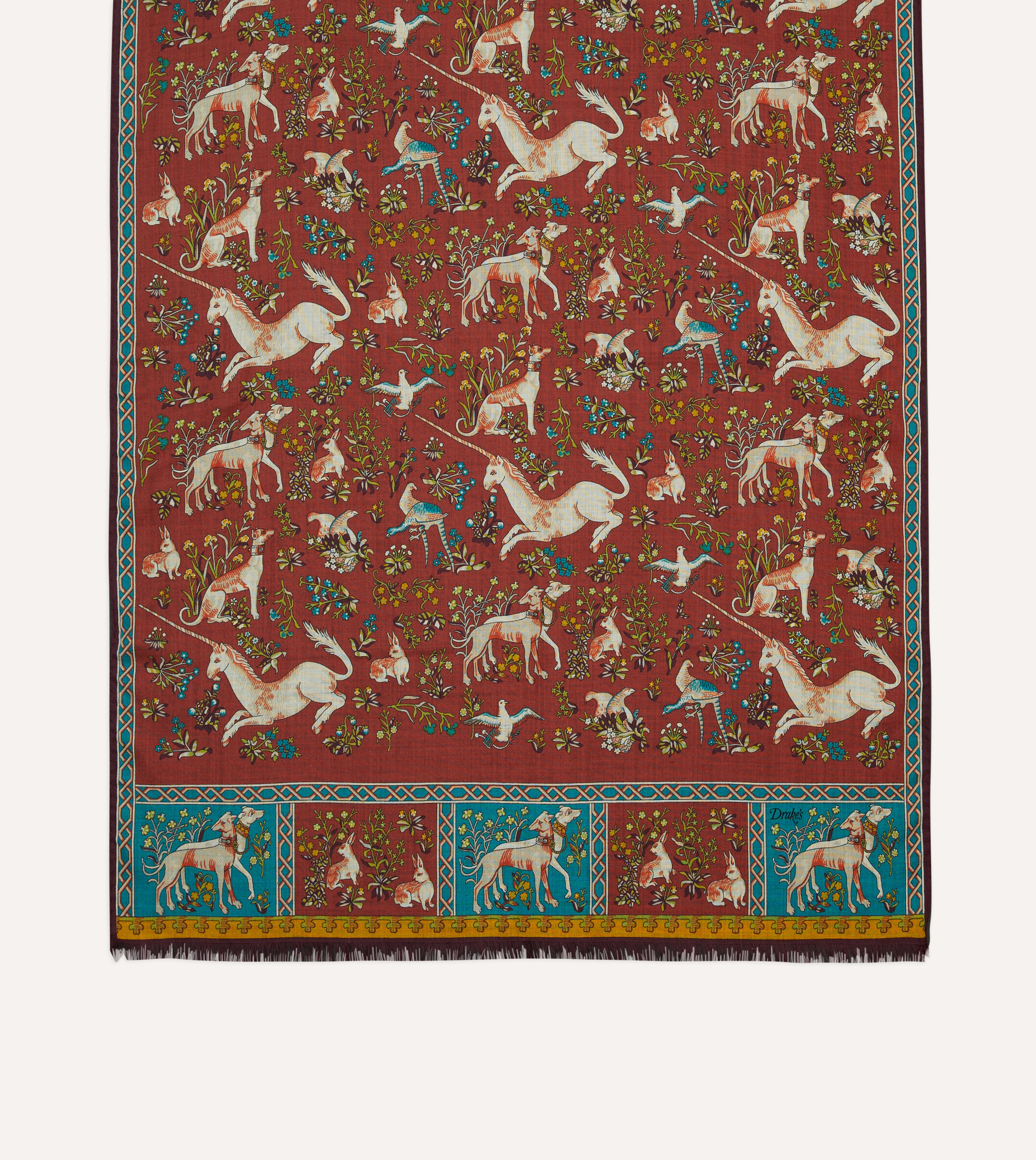 Red Unicorn Tile Print Wool-Silk Scarf
