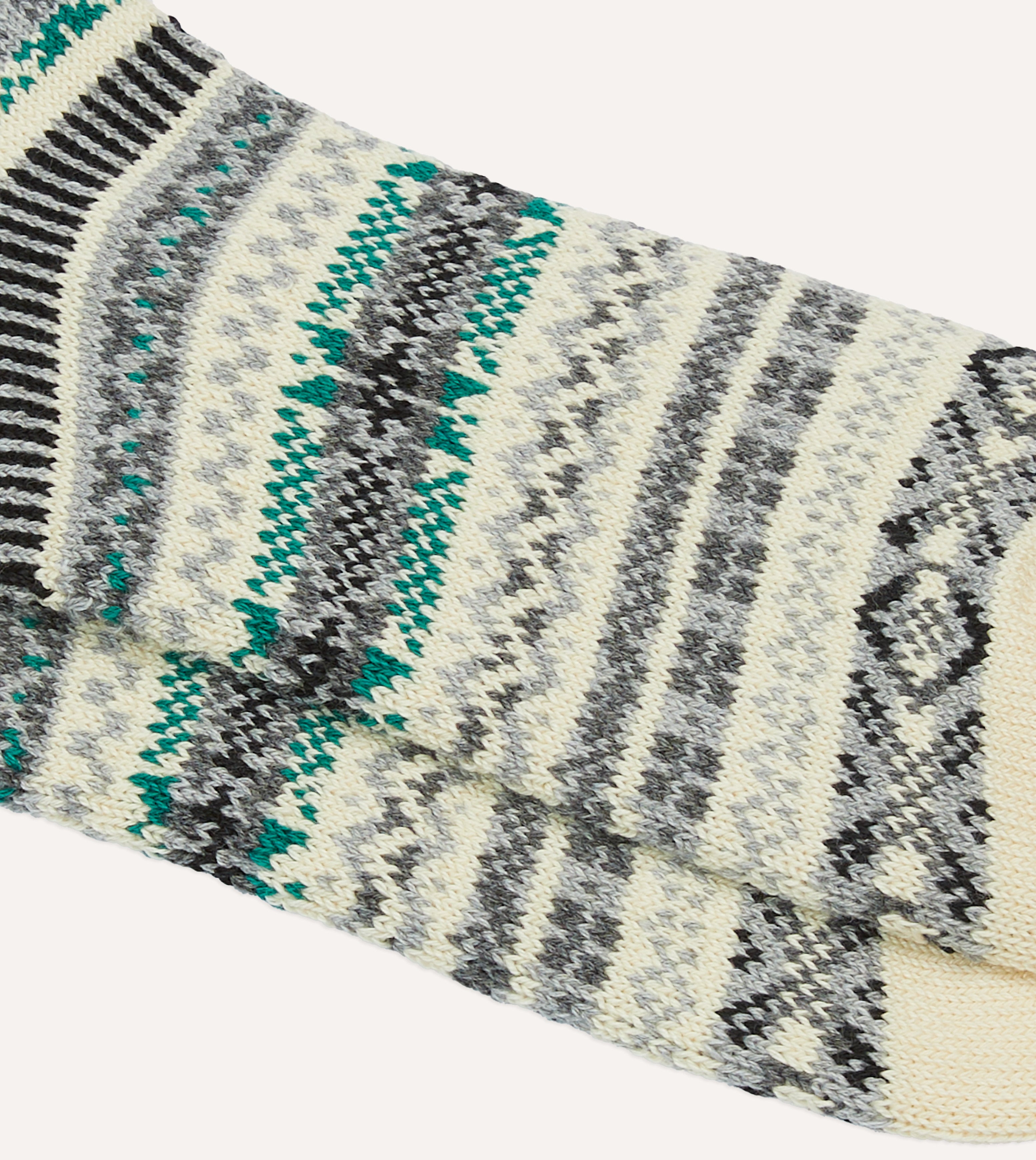 RoToTo Ecru Cotton Fair Isle Socks