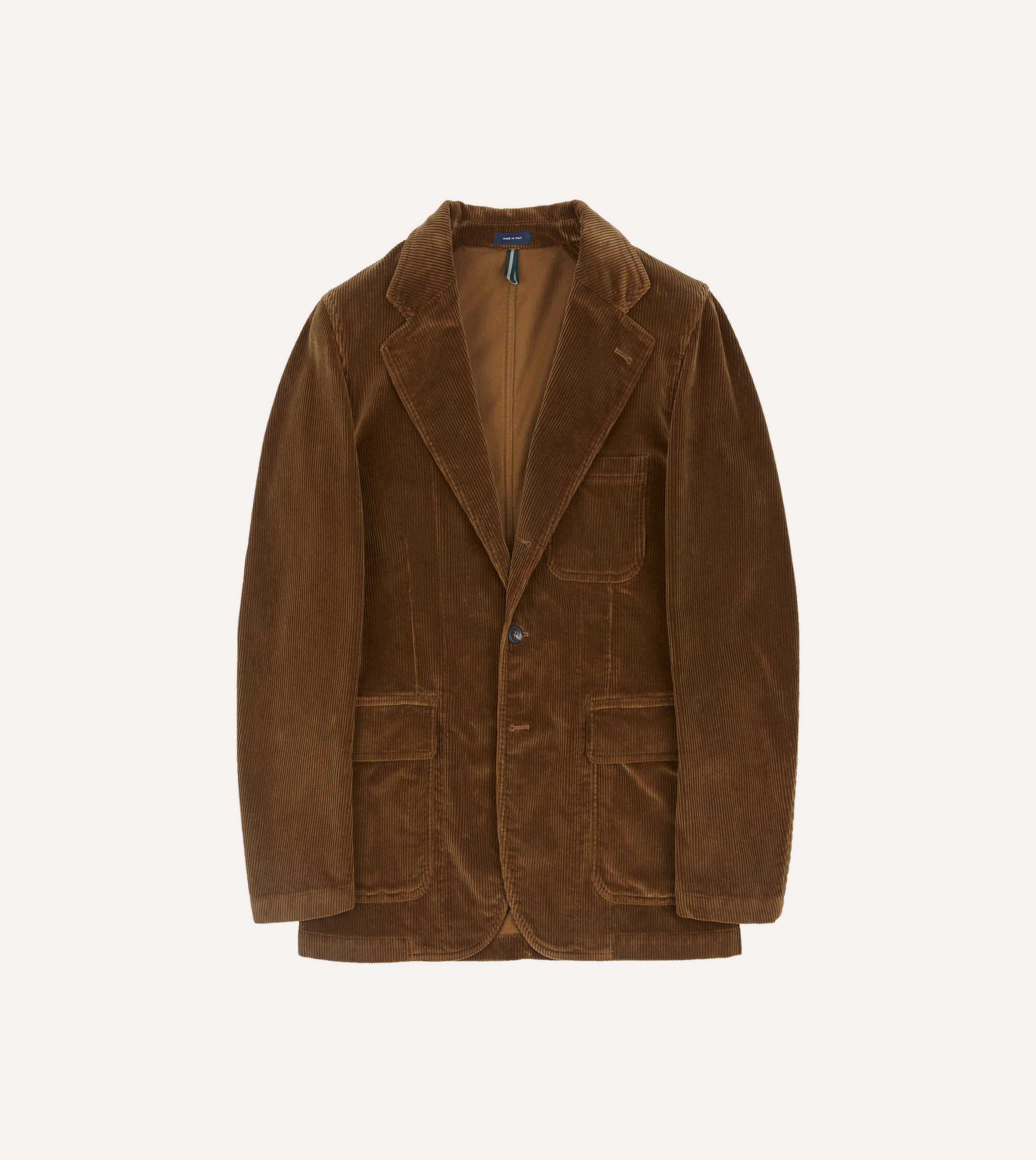 Cut from a hearty 8 wale cotton corduroy woven in the Calder Valley, Yorkshire by a mill at the forefront of country cloth production since 1858. Pair it with the matching trousers for an informal take on the classic two-piece suit.