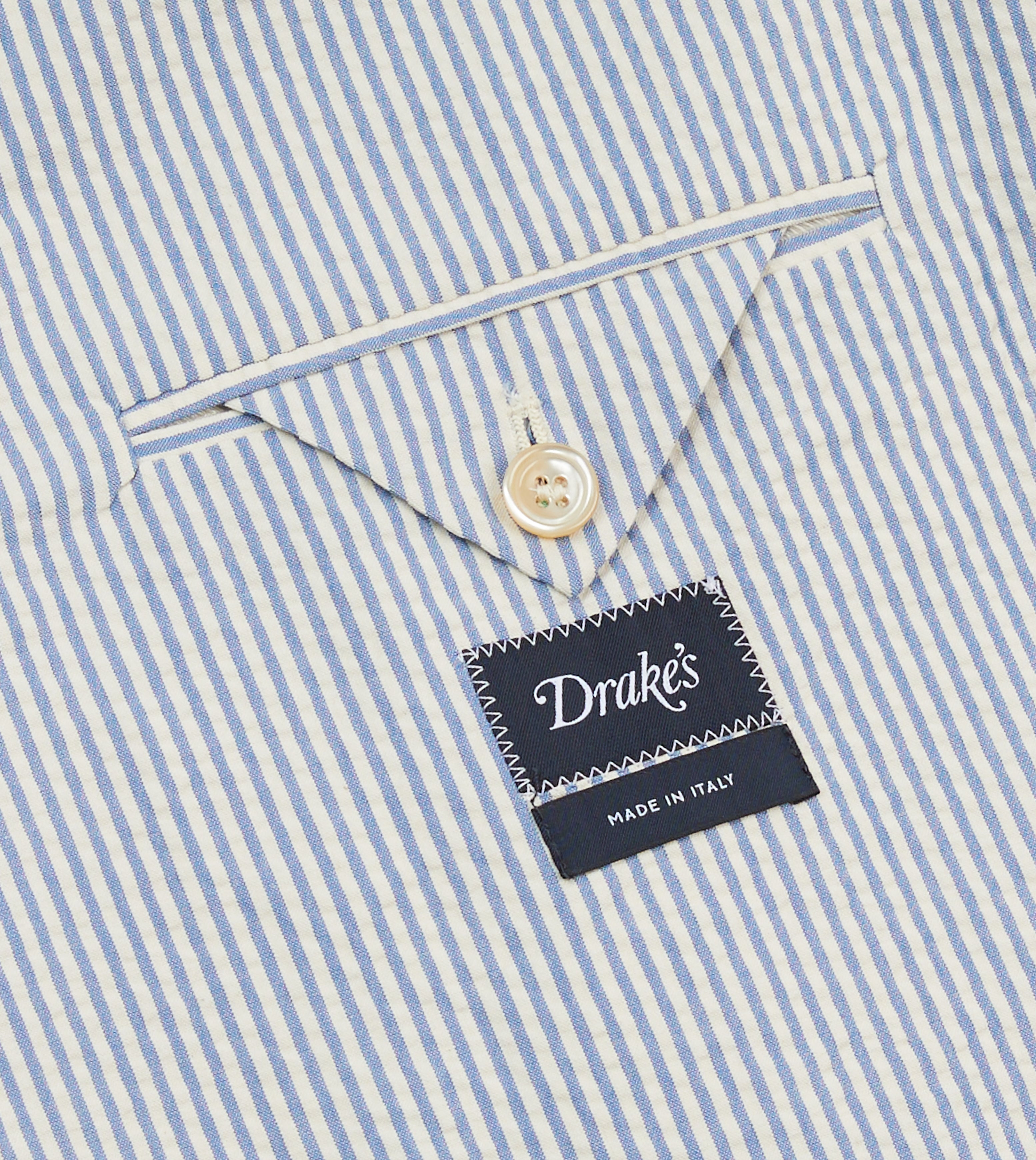 A tactile and lightweight 7oz seersucker fabric combines with an unlined Italian construction for the optimum in lightweight tailoring.