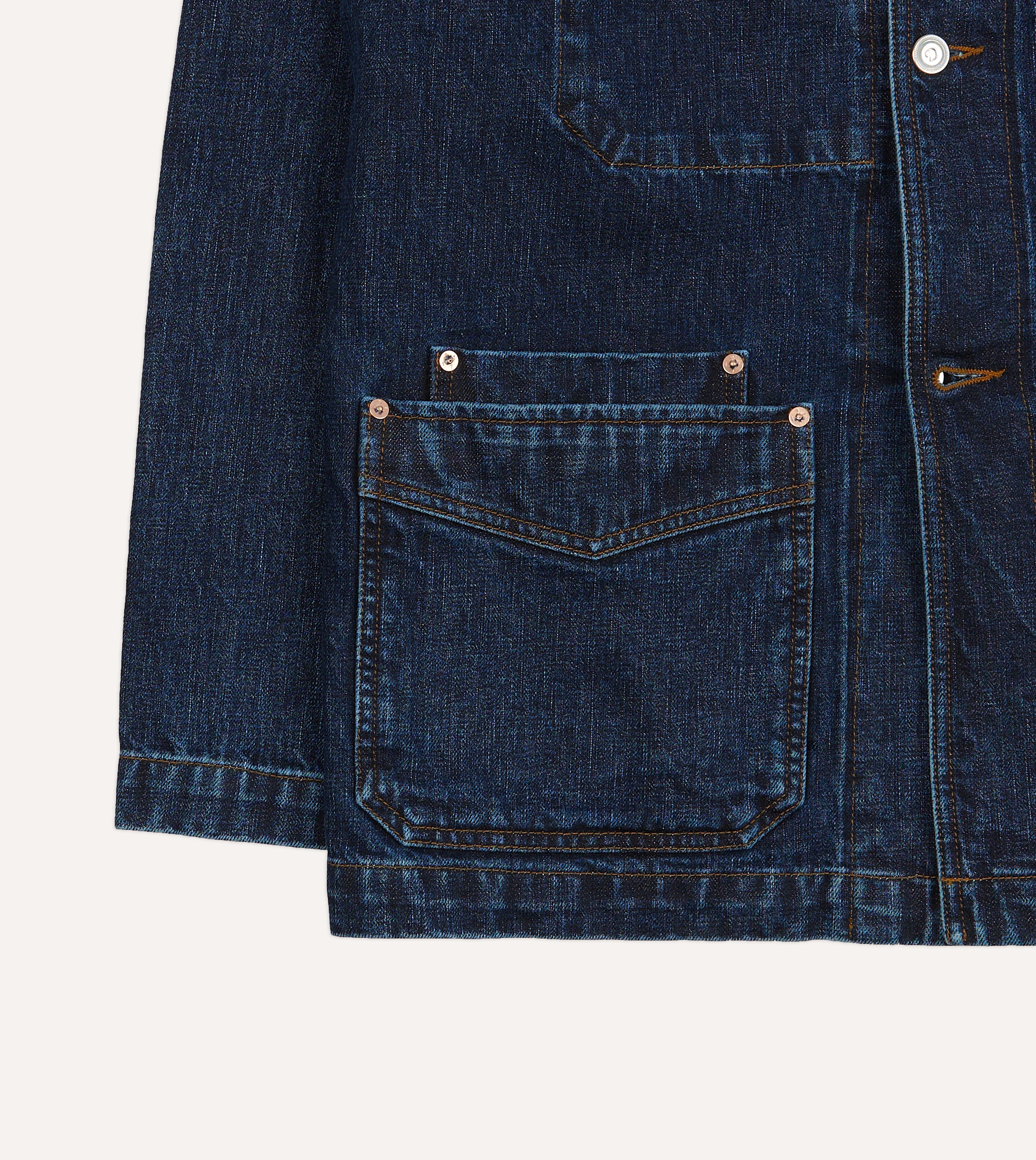 Our chore jackets are cut generously, with a slightly boxy shape recalling the original workwear garments worn around the turn of the century, as opposed to their slimmed-down, contemporary counterparts.