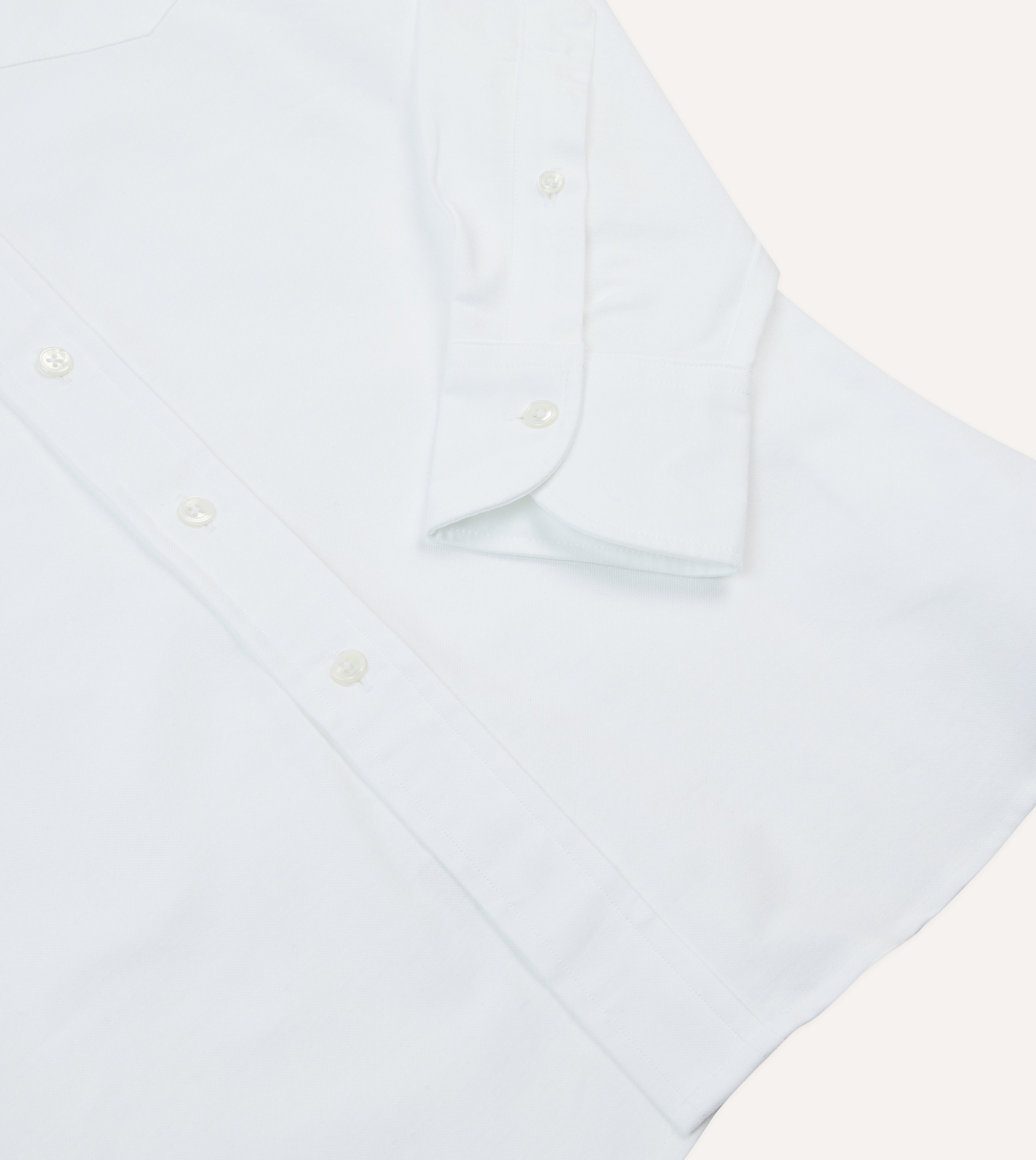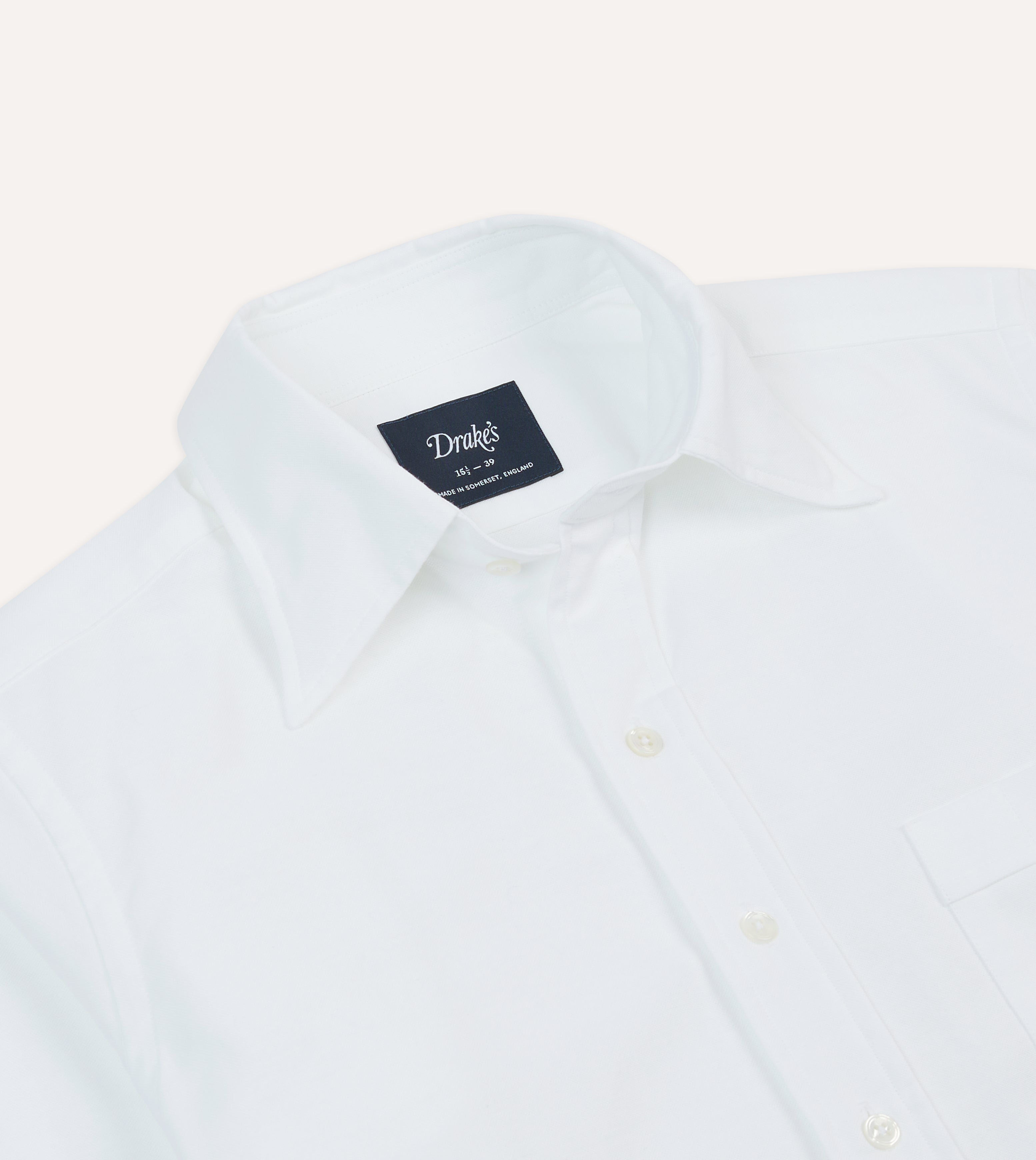 White Cotton Oxford Cloth Long Point Collar Shirt