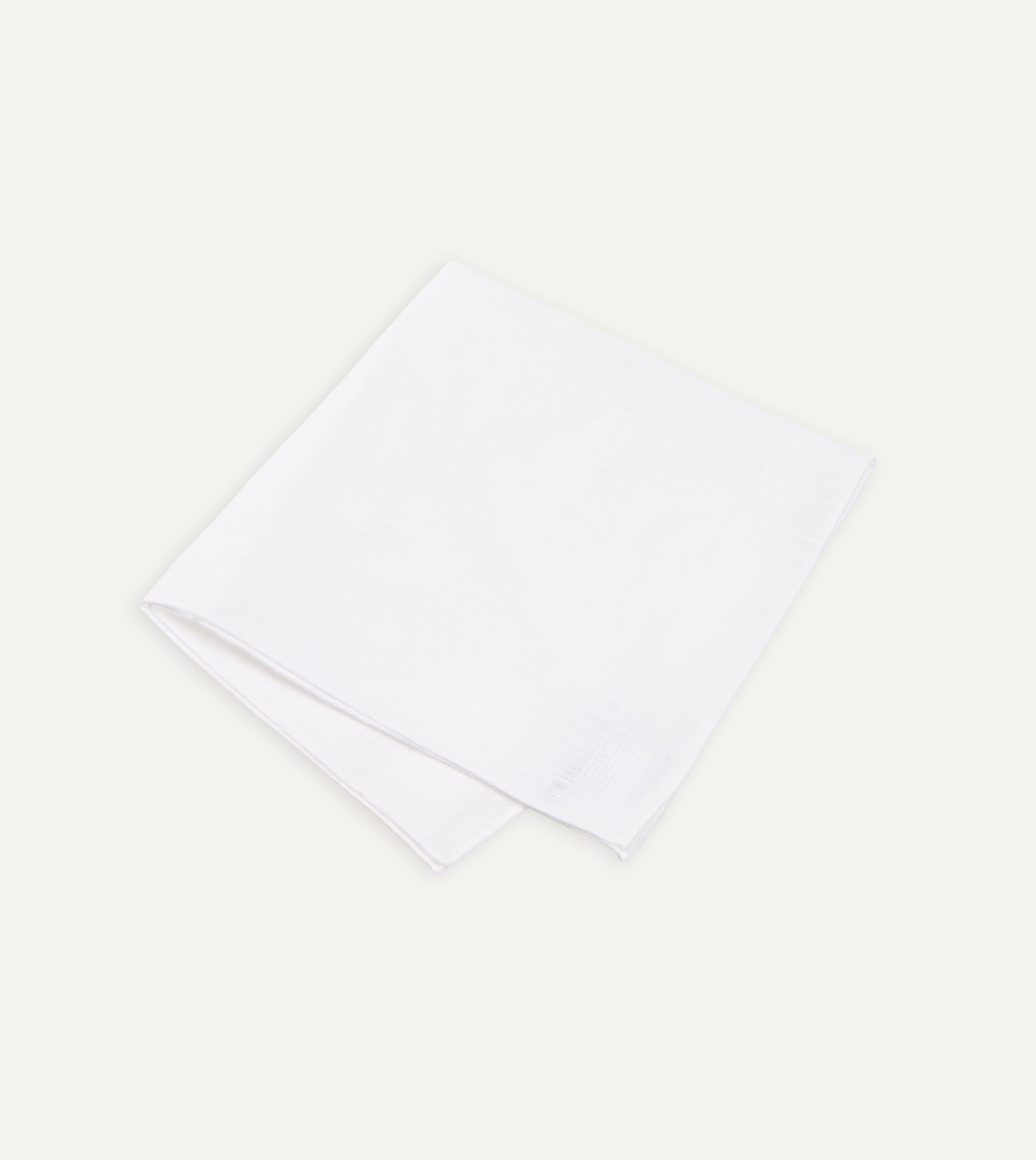 If you were to have just one pocket square in your drawer, this would be it. A plain white linen hank will add the finishing touch to any jacket you'd care to think of. This one has a tonal embroidered border for a little added interest.