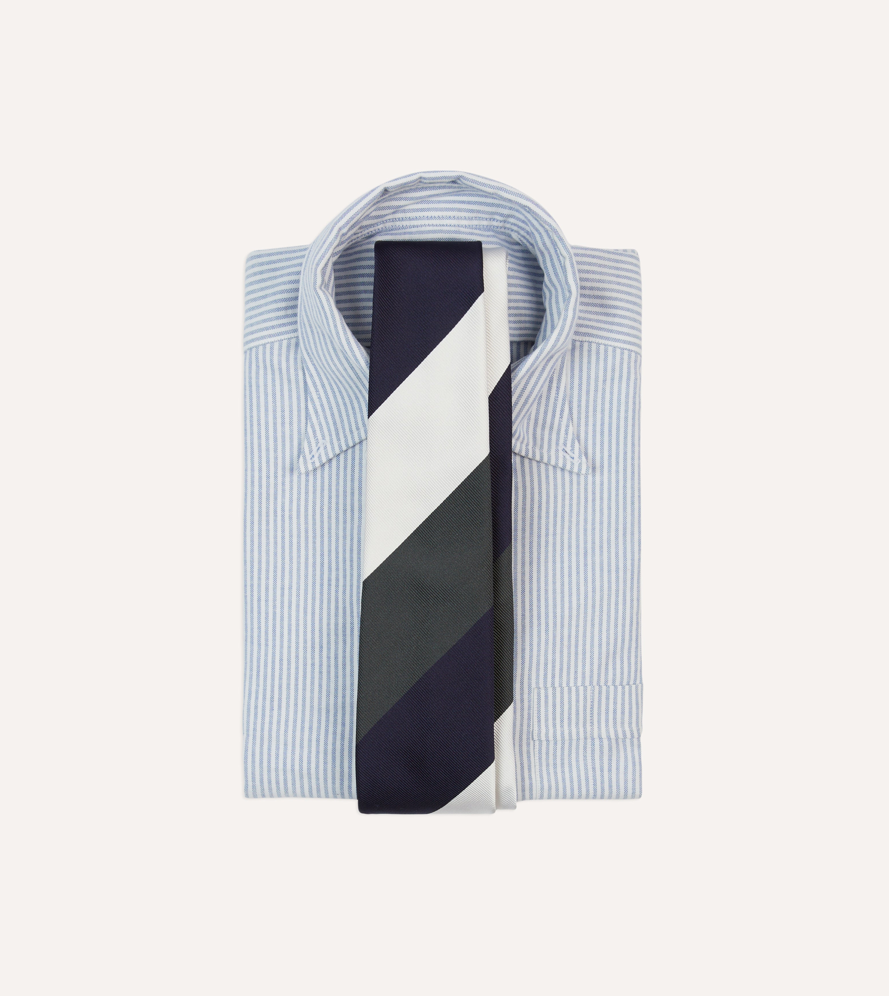 White, Navy and Grey Wide Stripe Repp Silk Tipped Tie