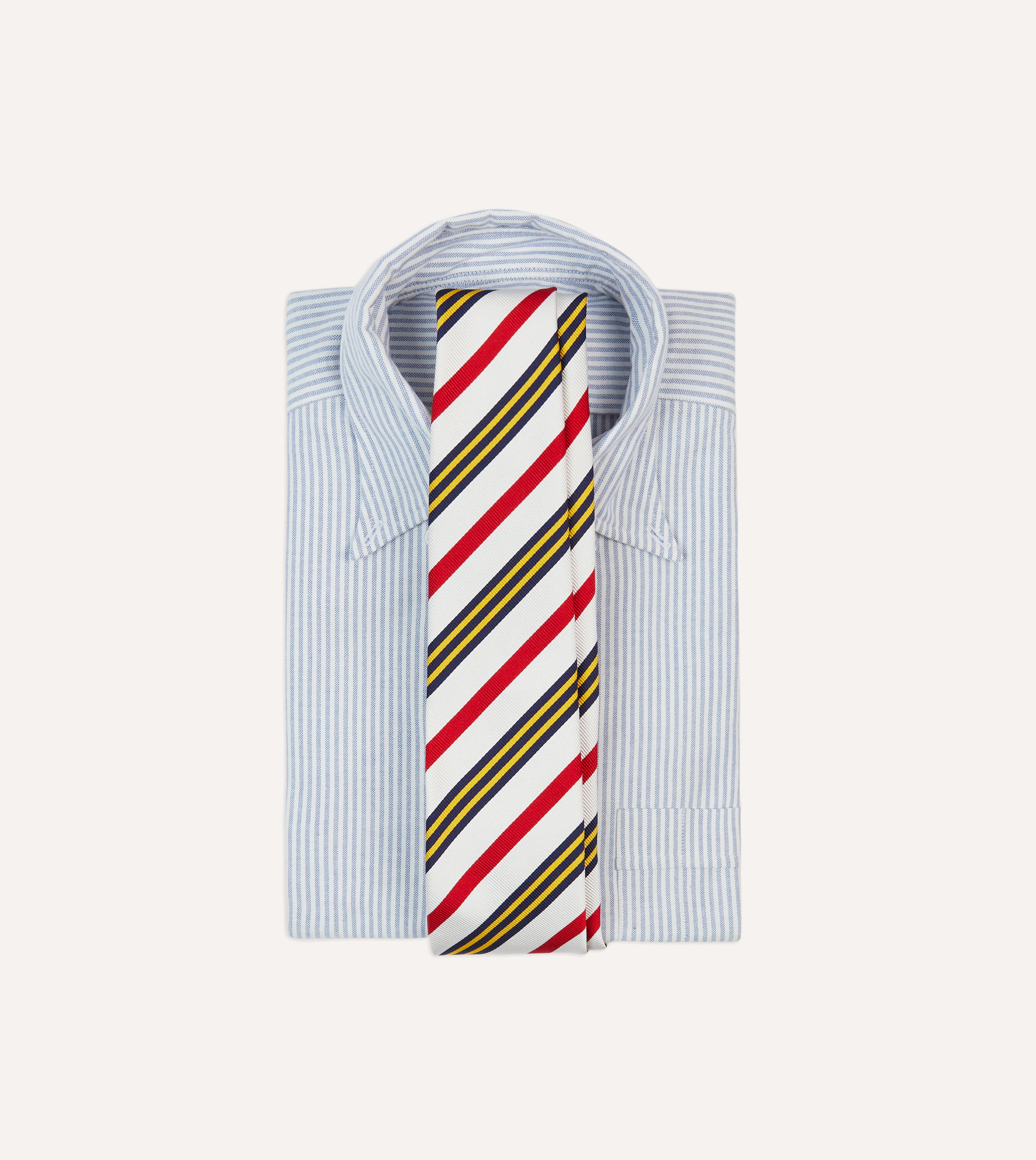 White, Navy, Yellow and Red Multi Stripe Repp Silk Tipped Tie