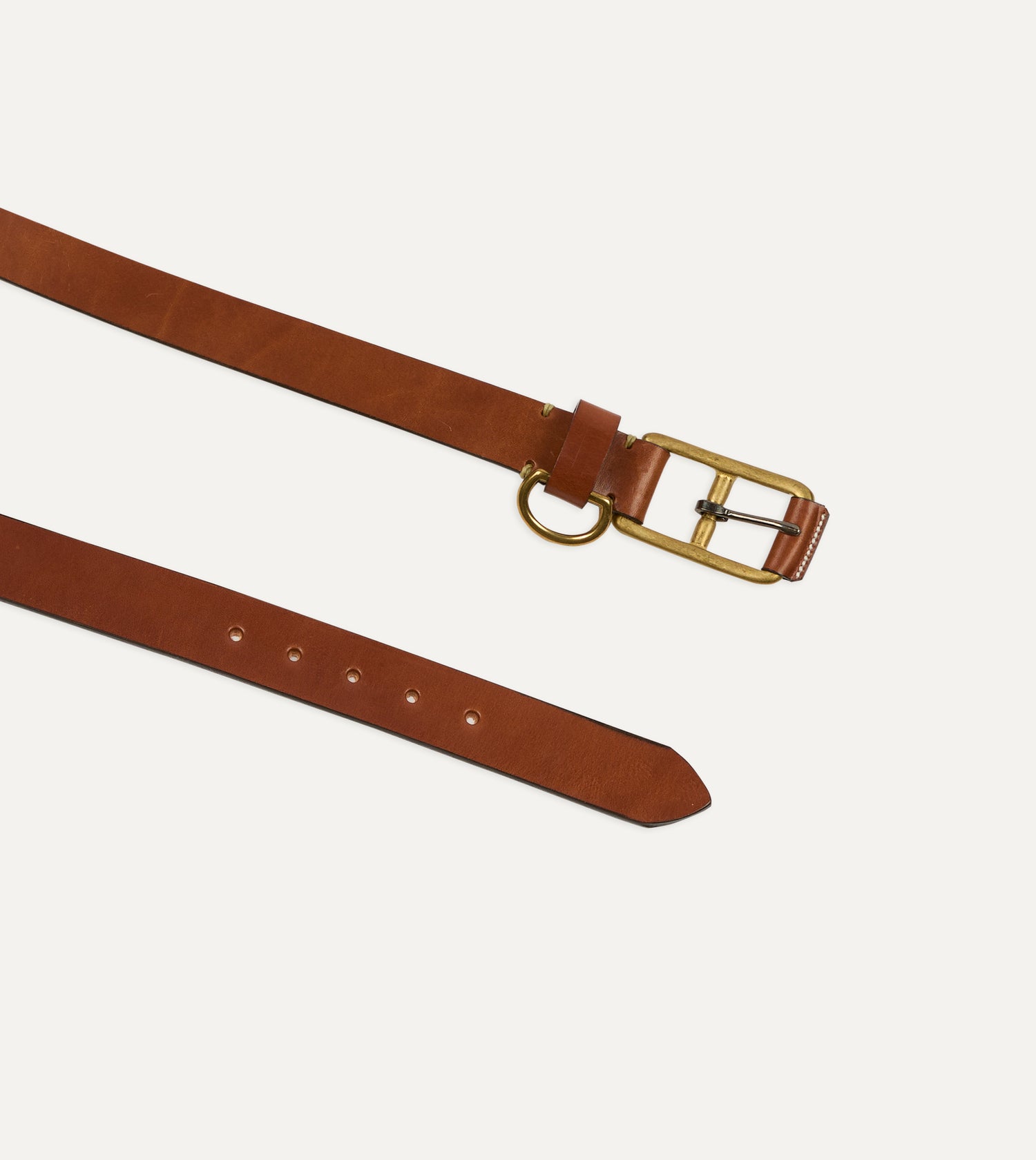 Made in the USA using sturdy English bridle leather, this belt from Yuketen is hand-cut, hand-finished, and built to last. The vegetable-tanned leather will soften and deepen in colour over time, while the solid brass D-ring hardware, the same kind used by traditional saddlers, will develop a rich patina with wear.